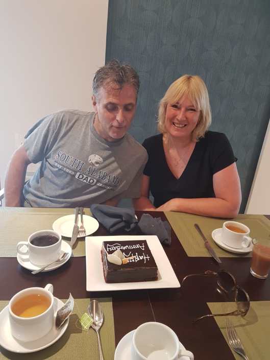 Maar we genoten gelukkig van het mooie zwembad van het 5 sterren hotel, we werden namelijk erg verwent door de poolman met een mandje met een sinasappeltje erin, een flesje water en een flesje zonnebrand. We besloten stiekem om niet alleen de ochtend daar te blijven maar gewoon de hele dag, het decadente beviel ons wel. Ontzettend leuk vonden Lesley en ik het toen er ineens een taart werd gebracht, nog voor onze 31 ste huwelijks dag, geregeld door onze kinderen.
