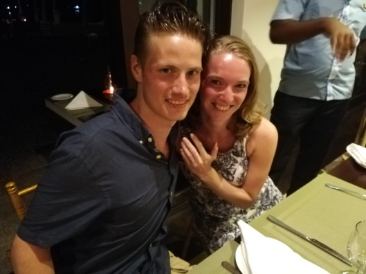 Jairo en Daisy hadden een belangrijk bericht. Jairo had toen ze samen op het strand aan het wandelen waren geweest romantisch zijn vriendin Daisy ten Huwelijk gevraagd en ze heeft JA gezegd!. Niemand wist het dat hij dat van plan was en het was dan ook een grote verrassing voor ons. Trots liet Daisy haar ring zien. Wat een mooie afsluiter van onze vakantie.
