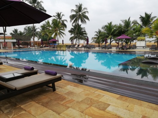 Het leek vandaag alsof het hotel redelijk klaar was, er werd niet gewerkt door de bouwvakkers en iedereen liep niet meer heen en weer en kris kras door elkaar, het restaurant personeel stond allemaal op hun eigen plek. Zouden ze nu dan klaar zijn? Maar wat bleek de grote Amerikaanse baas mr Heinecke nu woonachtig in Thailand, kwam langs en daarom was het zo stil. Hij was nog niet weg en het schuren aan de buitenbar begon weer. Maar ons hotel zag er inmiddels wel prachtig uit ook al waren de barretjes nog niet open. We werden uitgenodigd bij een ceremonie voor het vieren van onafhankelijks dag, deze werd ook weer gehouden in het naast gekregen 5 sterren hotel.