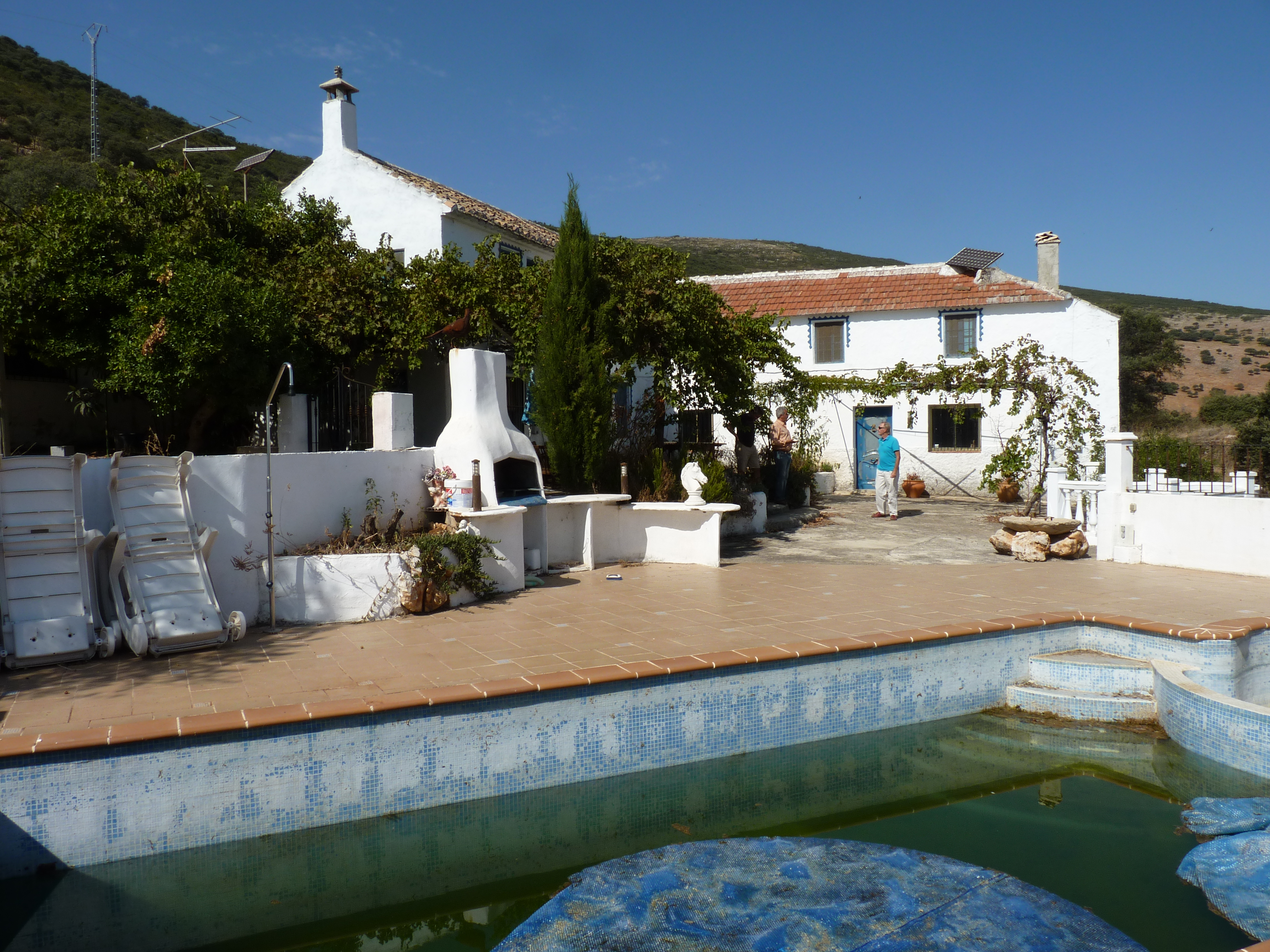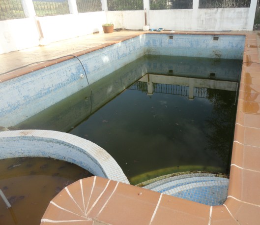 Het huis was aangepakt aan de buitenkant, de tuin en het terras. Wil je ook weten hoe we het zwembad aantroffen? Schrik niet, het was een bagger bende, het was net een sloot. Er was maanden misschien wel een jaar al niks aan gedaan.