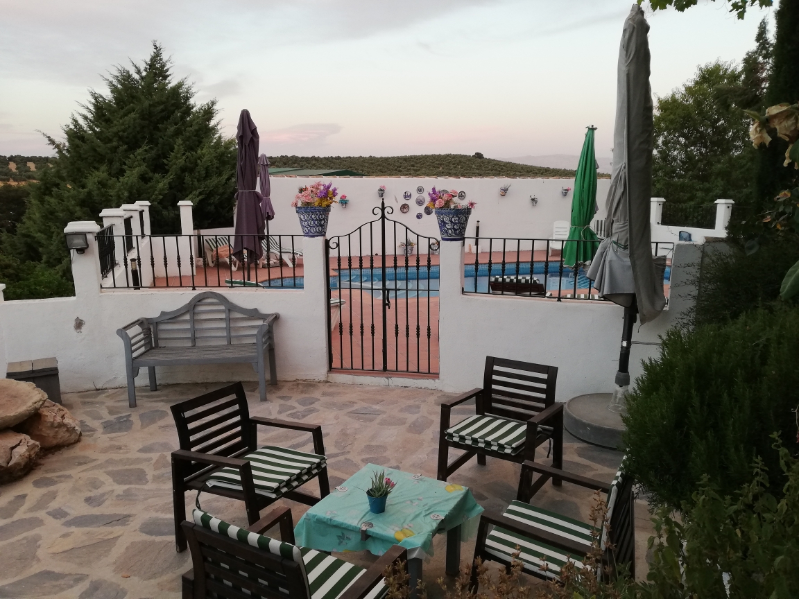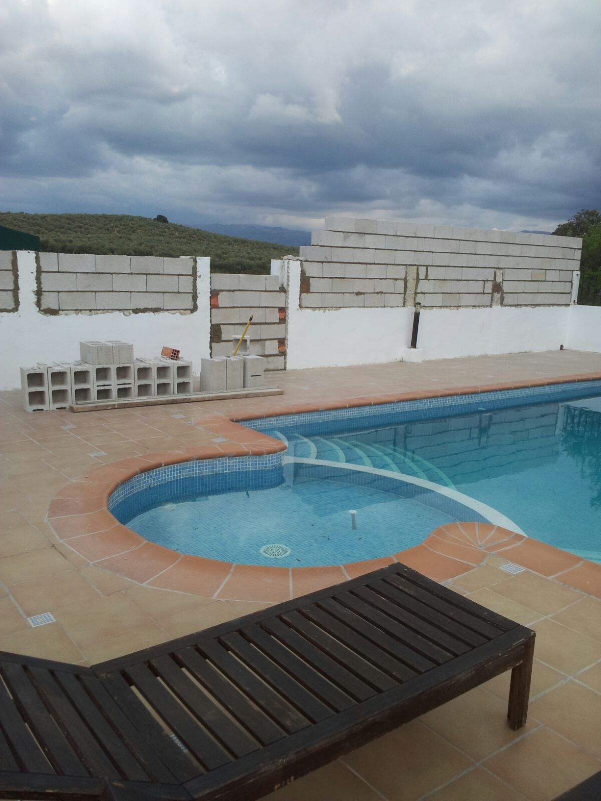 Inmiddels hebben we rondom het zwembad ook het één en ander veranderd, er is een muurtje omheen gekomen en aan de achterkant zelfs een grote muur, zodat we nog meer privacy hebben.