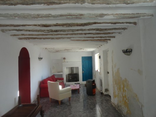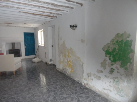 De artistieke muzikant waar wij het huis van hadden gekocht, had een aparte smaak. Hij hield vooral van blauw en rood. Nu is mooi rood niet lelijk maar hier was het een allegaartje. In iedere kamer lag een andere tegelvloer en in iedere kamer was er een ander kleurtje of patroontje te vinden. Waar moet ik beginnen dacht ik. Ik moest de interieurstylist in mezelf gaan aanspreken. Ik vond het jammer dat ze in de huiskamer de balken wit hadden gemaakt, dit wilde ik weer terug hebben in de originele staat. Dit was een klus die we flink onderschat hadden, alles boven je hoofd is ontzettend zwaar. Uiteindelijk hebben we iemand ingehuurd omdat af te maken, dat scheelde uren werk.