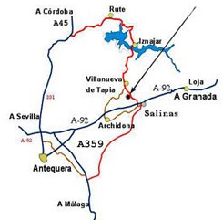 Zie helemaal rechts in het boven hoekje. In het dorp zit zelfs een plekje waar 3 provincies elkaar raken. Cordoba, Malaga en Granada.