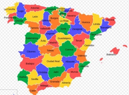 Spanje heeft 52 provincies en die liggen in 1 van de 17 regio’s van Spanje. Andalusië is 1 regio van die 17 regio’s.