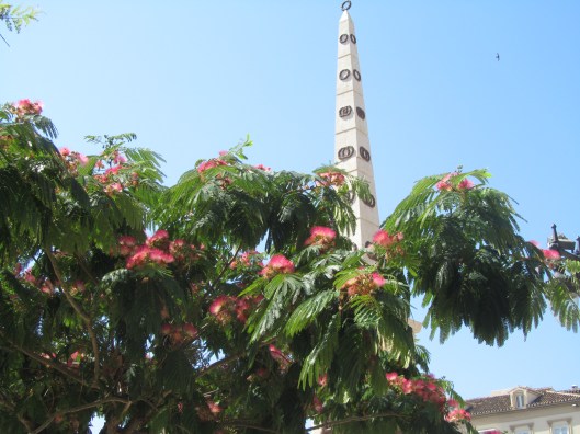 Er staat een beeld van Picasso tegenover zijn geboortehuis. Er zijn vele gezellige terrasje op dit plein en je geniet van de mooie Jacaranda en Perzische slaapboom/ zijdeboom, familie van de Mimosa bomen. Er staat ook een statig monument: Obelisco de Torrijos ter nagedachtenis aan strijders voor de vrijheid.