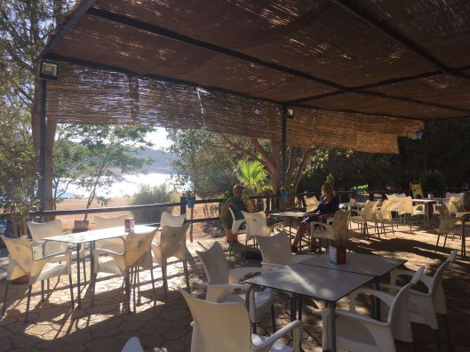 Er zitten meerdere restaurants in Iznajar met uitzicht op het meer. Direct aan het strandje zitten er twee.