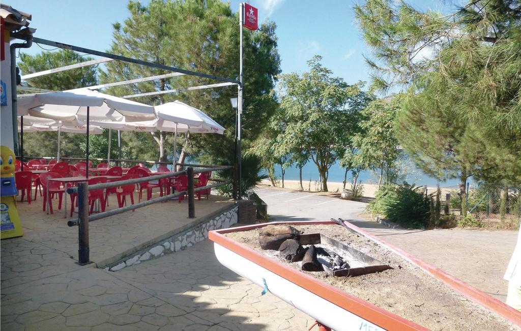 Of ongedwongen onder de rieten overkapping een tapas eten en een lekkere koele tinto de verano drinken bij beach bar Camping Valdearenas.