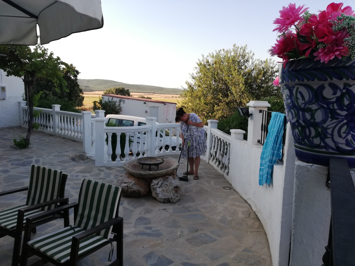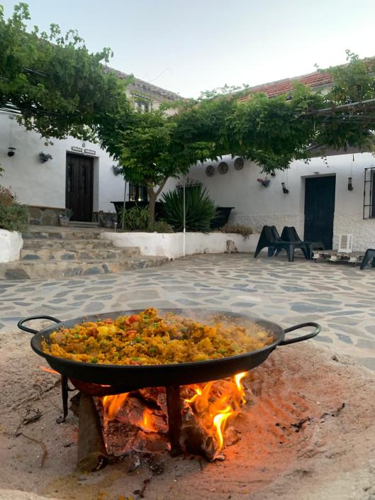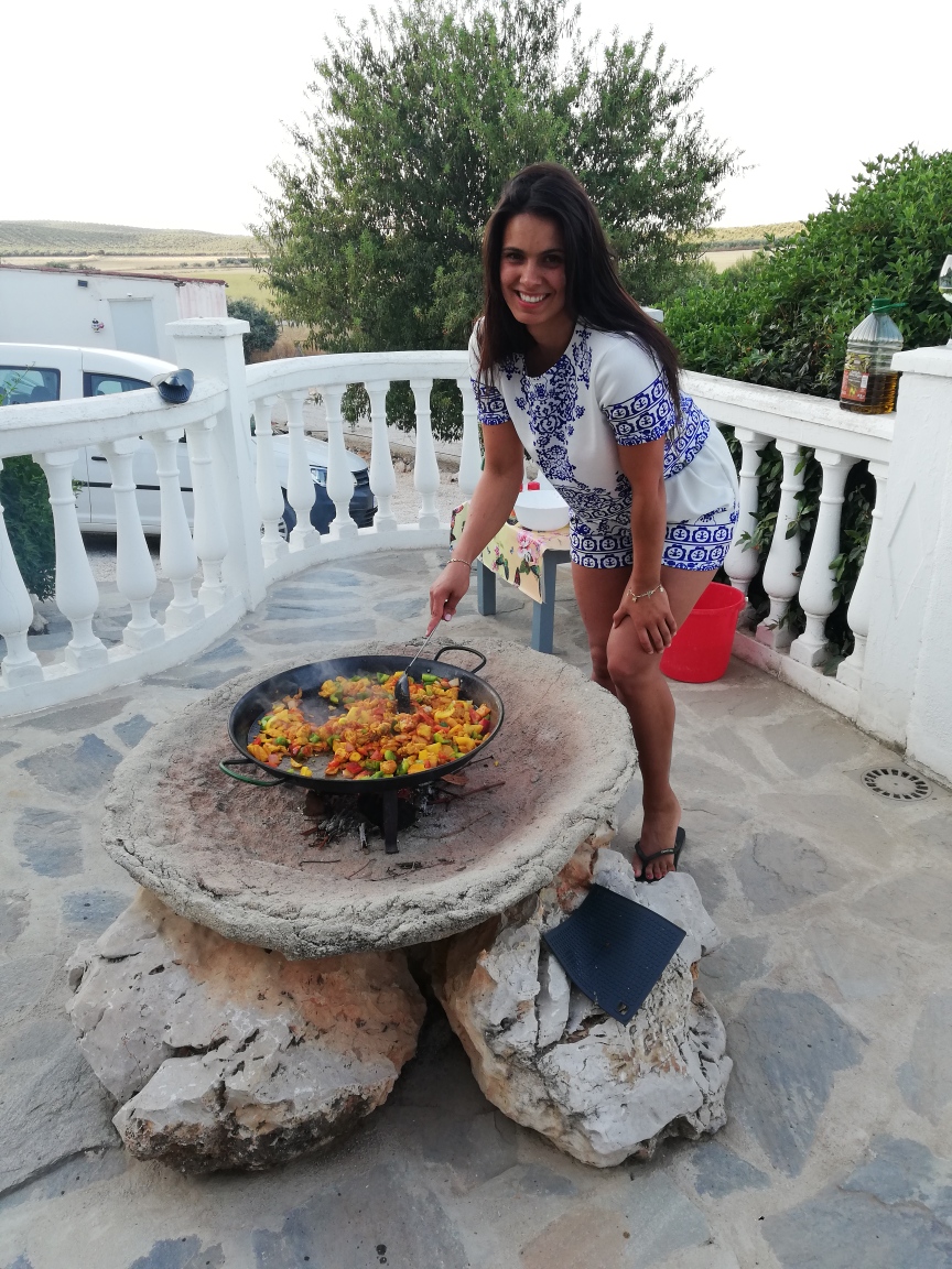 Cheyenne deed de voorbereiding voor de huisgemaakte paella. Inkopen gedaan bij de grote Mercadona supermarkt die in het nabij gelegen plaatje Archidona ligt en daarna fikkie stoken op de vuursteen en kokkerellen maar.
