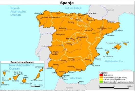 Wat een dikke pech voor onze dochter, nog geen 8 uur voordat ze zou vertrekken kleurde Spanje oranje, normaal is oranje een super leuke kleur en heeft het voor Nederland ook een speciale betekenis want op feestdagen en tijdens belangrijke voetbalwedstrijden kleurt Nederland oranje maar nu was het een vreselijke kleur want haar vakantie kon niet doorgaan. Dat Spanje nu Oranje is betekent dat alleen noodzakelijke reizen zijn toegestaan en dat toeristische reizen worden afgeraden, als je toch gaat, op eigen risico, dan moet je bij thuiskomst 10 dagen in quarantaine.