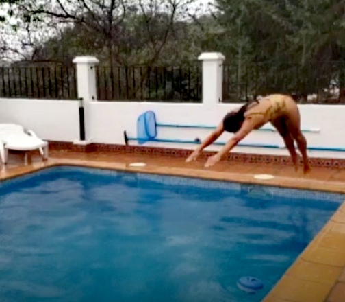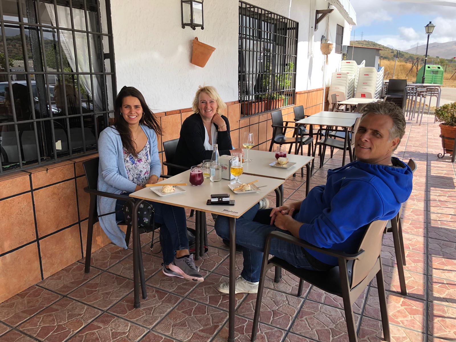Eerst maar even bij Manolo lunchen dan, daar was het een beetje fris op het terras maar we konden nog net buiten zitten. Gelukkig aan het eind van de middag kwam na de regen toch het zonnetje weer tevoorschijn dus huppakee er werd een duik in het zwembad genomen door ons waterratje.