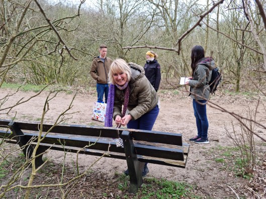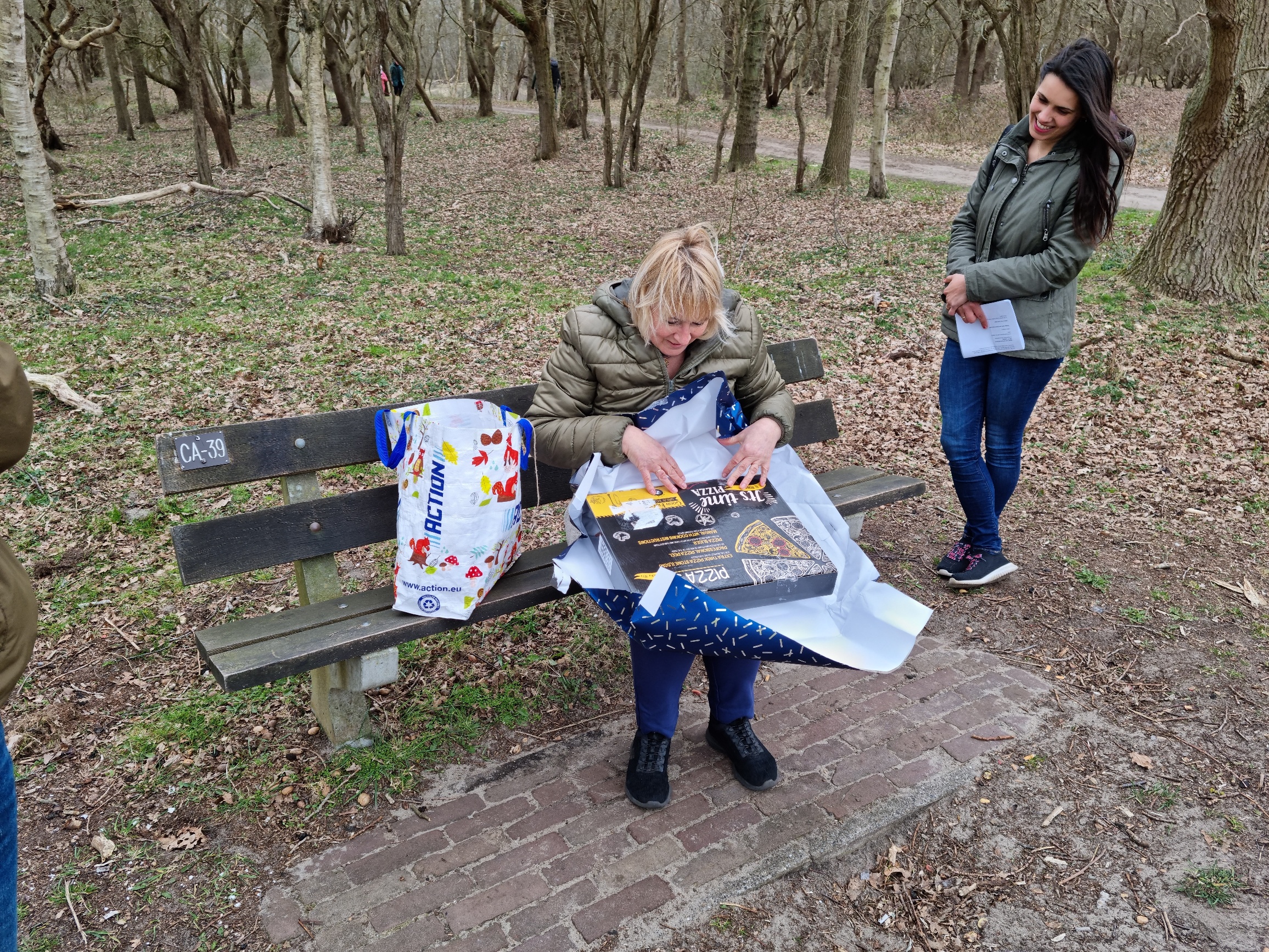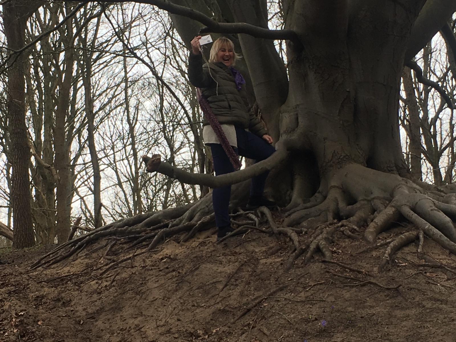 Toen zag ik ineens een doosje hangen en daarop stond Ira 55 jaar. Ik maakte het open en daar zat een briefje in waarop stond dat we een speurtocht door het bos gingen maken met als thema de wandeling door mijn leven.