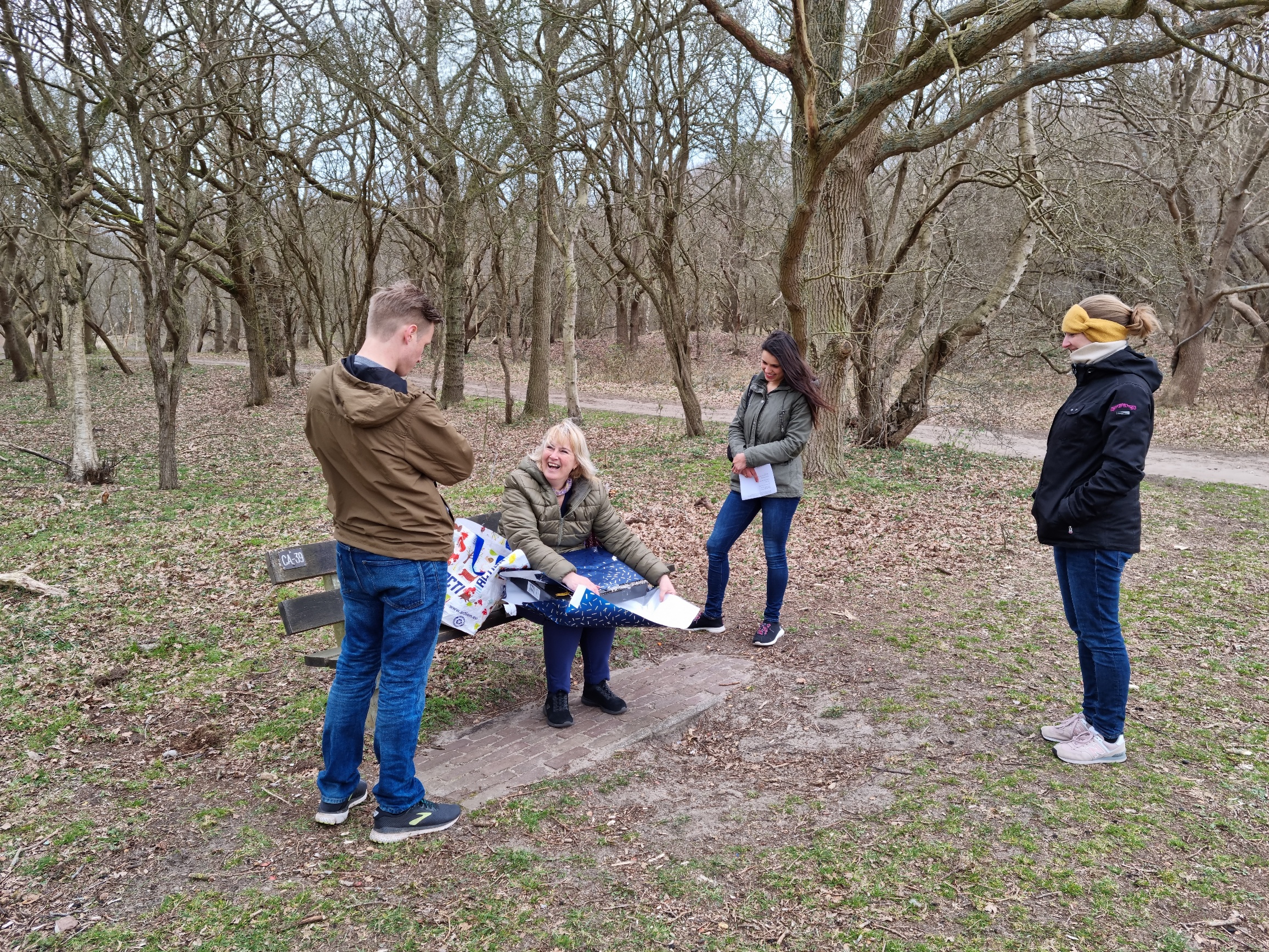 Toen het taartje op was zeiden ze zullen we bij Johanna gaan wandelen? Prima zei ik niks vermoedend. Toen ik daaraan kwam viel het me direct op dat de kinderen een tas bij zich hadden. Waarom hebben jullie dat mee vroeg ik gelijk. Niet zo nieuwsgierig Mam, kijk eerst maar eens goed om je heen.