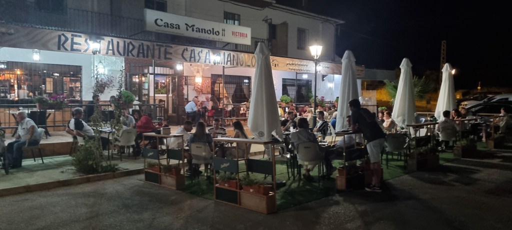Onze laatste avond van deze vakantie besloten we als afsluiter naar Manolo toe te gaan, zoals gewoonlijk, hoe voorspelbaar zijn wij. Je kan daar voldoende afstand houden buiten op het super grote terras wat ze nu hebben. Helemaal gevuld met alleen maar Spanjaarden, die rond half 10 kwamen, dat is de tijd dat zij pas gaan eten. Wij gaan dit heerlijke leventje weer missen.
