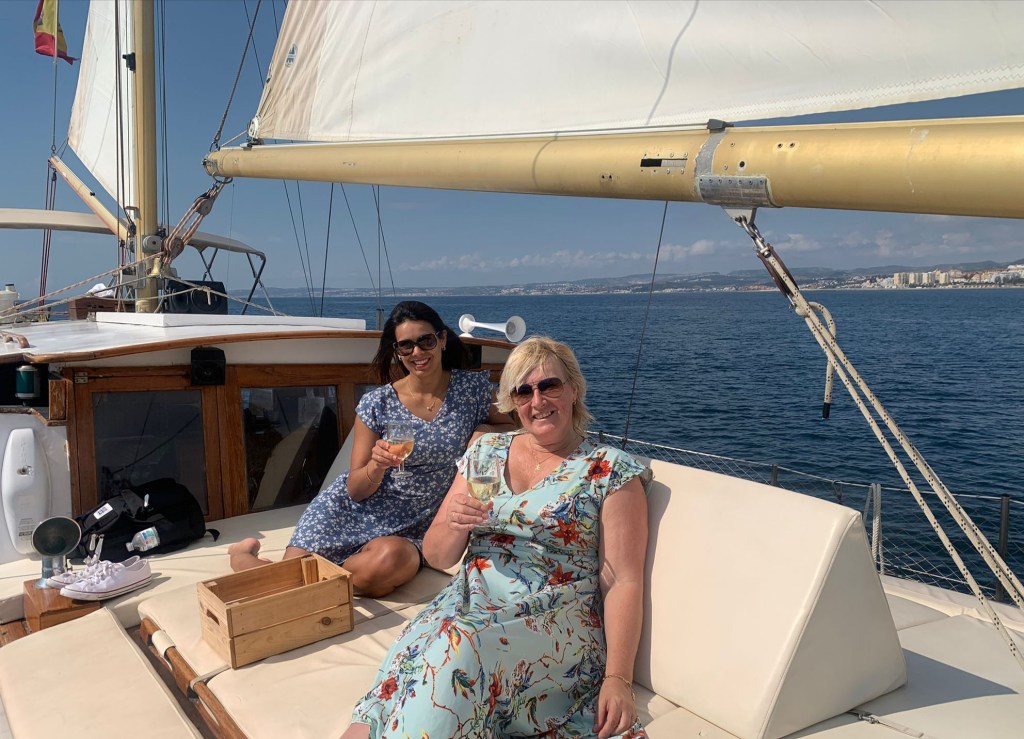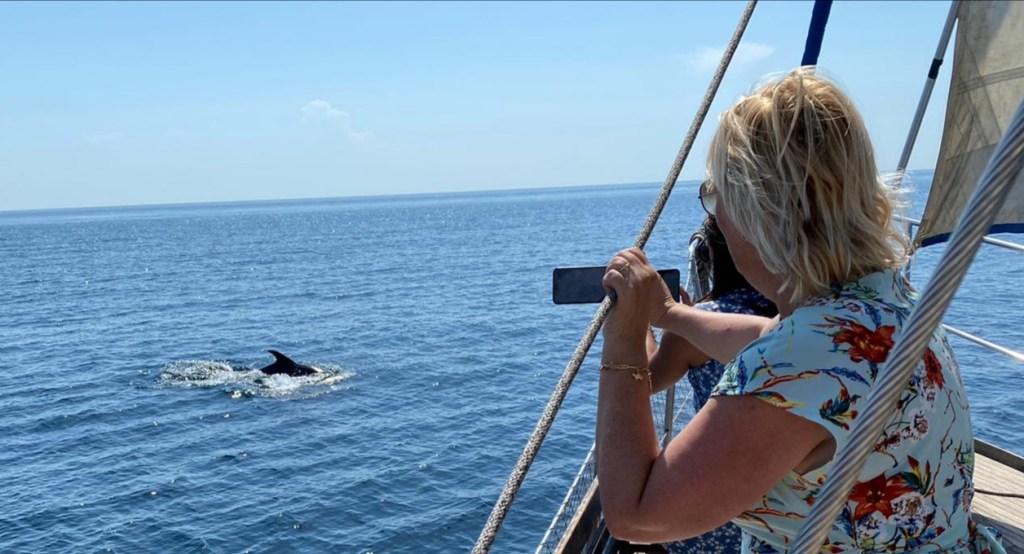 Een heerlijke tocht van 2 uur en we werden verwent met een glaasje cava maar de echte bonus was natuurlijk dat we dolfijnen zagen zwemmen naast de boot.