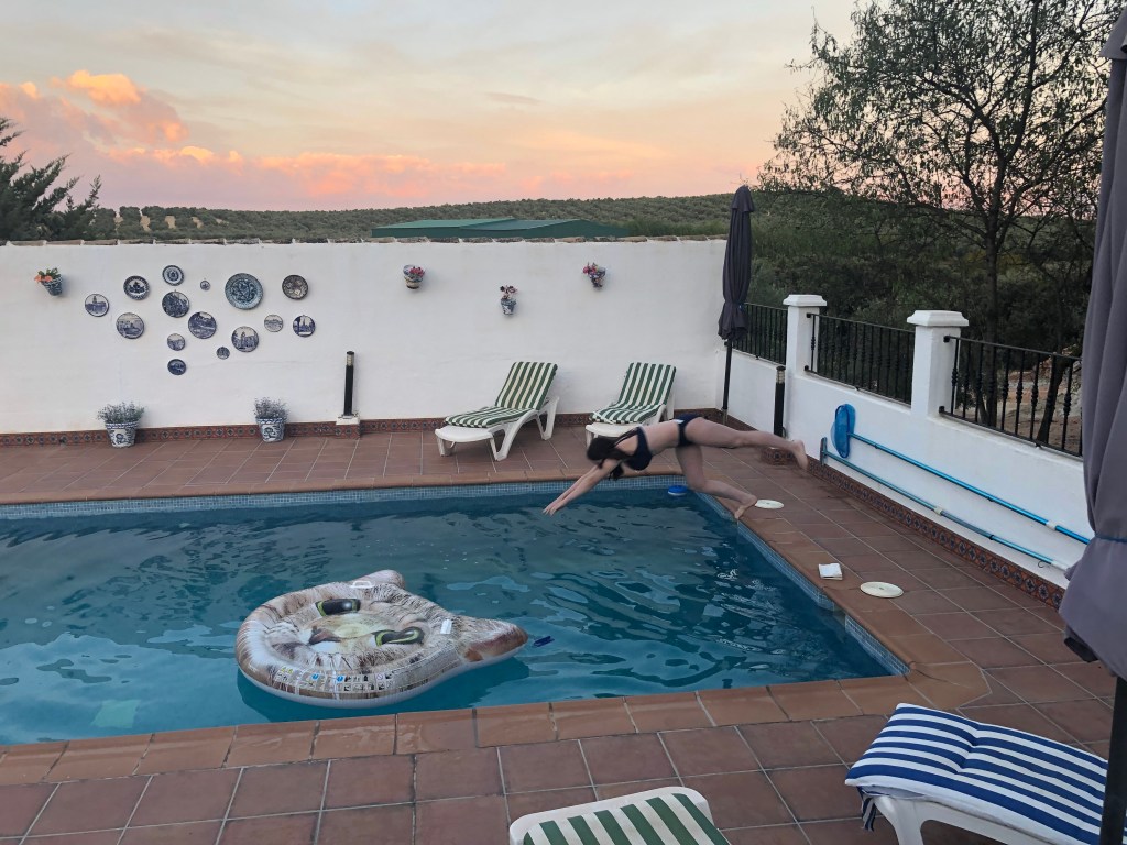 Vanuit het alweer wat kouder wordende Denemarken was het natuurlijk heerlijk om in het zonnetje te komen, dus de badkleding werd aangedaan en er werd een duik genomen in het zwembad.