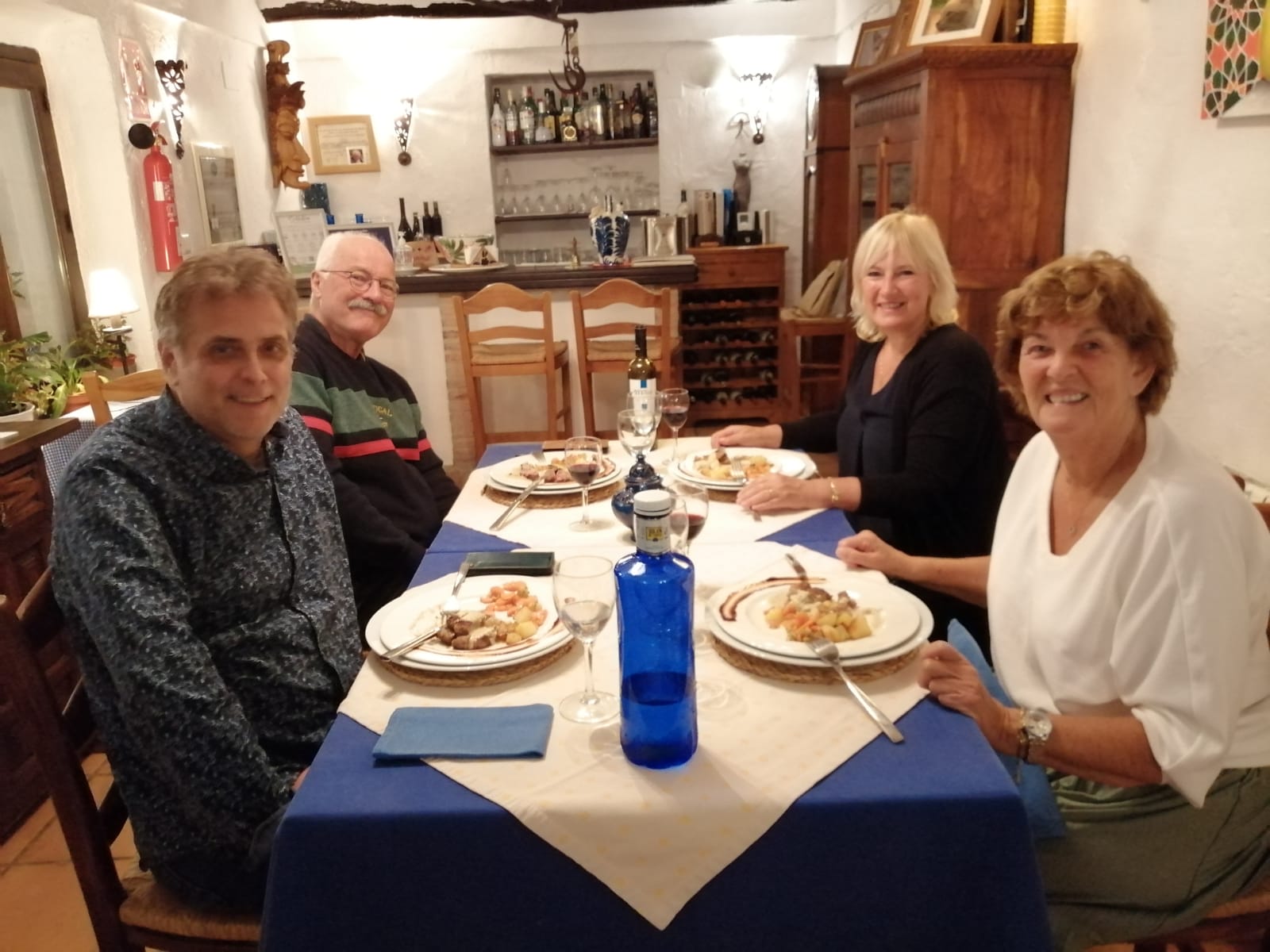 Het was lastig iets te betalen met mijn ouders in de buurt, ze wilden alles op zich nemen, gelukkig toen we ze meenamen naar Cortijo la Haza en zeiden dat deze traktatie een cadeau was voor hun verjaardag lieten ze het toe. Net op dat moment was het s’avonds iets frisser en konden we niet buiten zitten, maar binnen zit je hier ook heel gezellig. We hebben genoten, het eten was als vanouds heel erg smakelijk en vooral was mijn vader goed te spreken over de brandy op het eind.