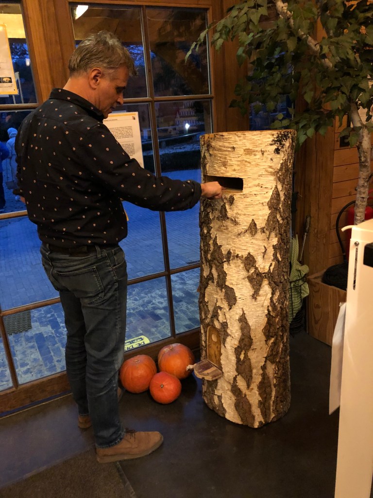 We kregen ook allemaal 1 kaart en die mogen we naar iemand opsturen, de kabouter zou hem frankeren en hem versturen vertelde ze. Leuk idee, de kaart werd geschreven door ons en ging in de boomstam brievenbus. Dus houd je brievenbus in de gaten wie weet ontvang jij er wel 1.