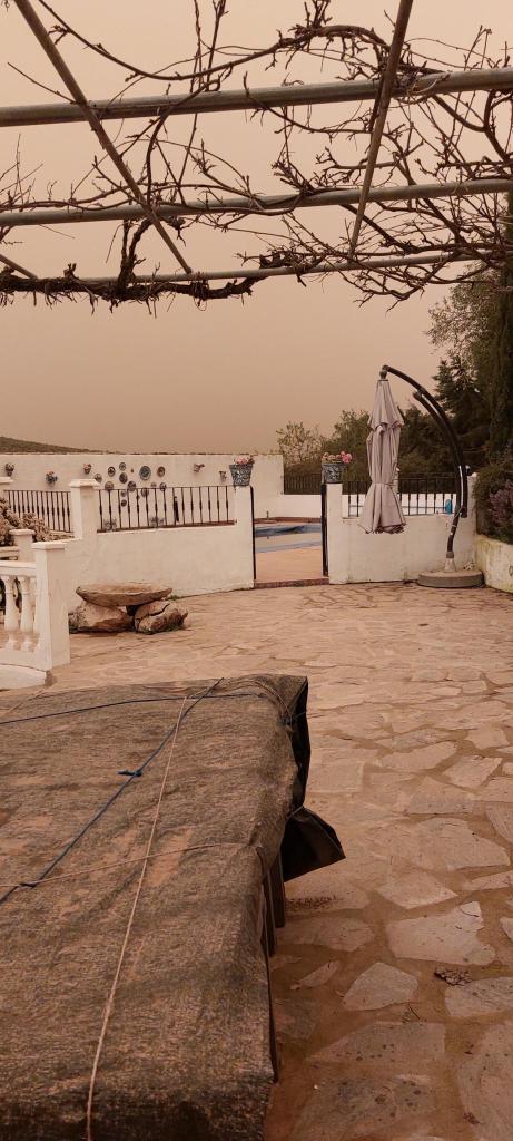 Paco onze sleutelbeheerder cq klusjesman vertelde dat dit echt heel ongewoon was, hij had dit nog nooit eerder zo erg meegemaakt, het schijnt in 50 jaar nog nooit zo erg te zijn geweest. Eerlijk alles was nu oranje geworden en geen stof die je er zo afblaast maar een dikke kleverige klei laag.