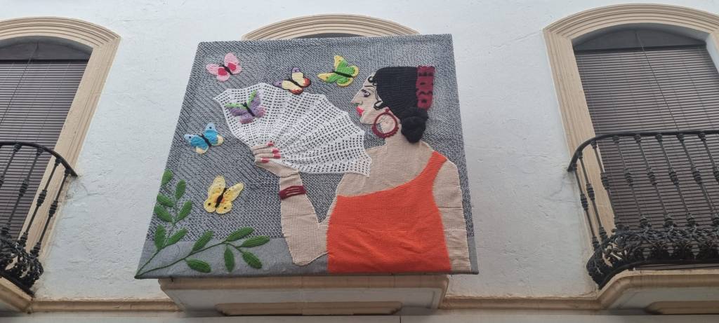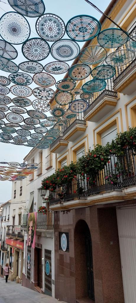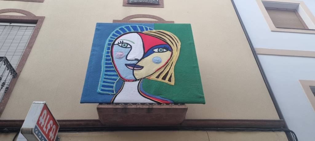 De dames van Iznajar hadden namelijk hun creativiteit gebruikt in de winter en hadden een aantal schilderijen van beroemde schilders na gebreid, Picasso en Salvador Dali ontbraken natuurlijk niet, alles was juist deze week tentoongesteld in het centrum.