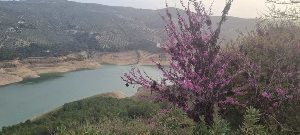 Tegen de avond zijn we naar het dorpje Iznajar gereden, de regen is fanatisch om het meer weer wat aan te vullen, niet normaal laag staat deze nog steeds, de winter was ook niet zo nat geweest dus er was weinig water bijgekomen. Normaal zeg ik het schattige witte dorpje Iznajar, maar van wit was er dit keer helemaal geen sprake, ook daar was alles bedekt met een oranje gloed. Ja die Fransen hebben het beter voor elkaar daar zijn alle huizen zalmkleurig en waarschijnlijk niet voor niks. Ik heb al besloten om onze nieuwe buitenplek ook zalm te gaan verven van de zomer, dat is toch wat minder besmettelijk.