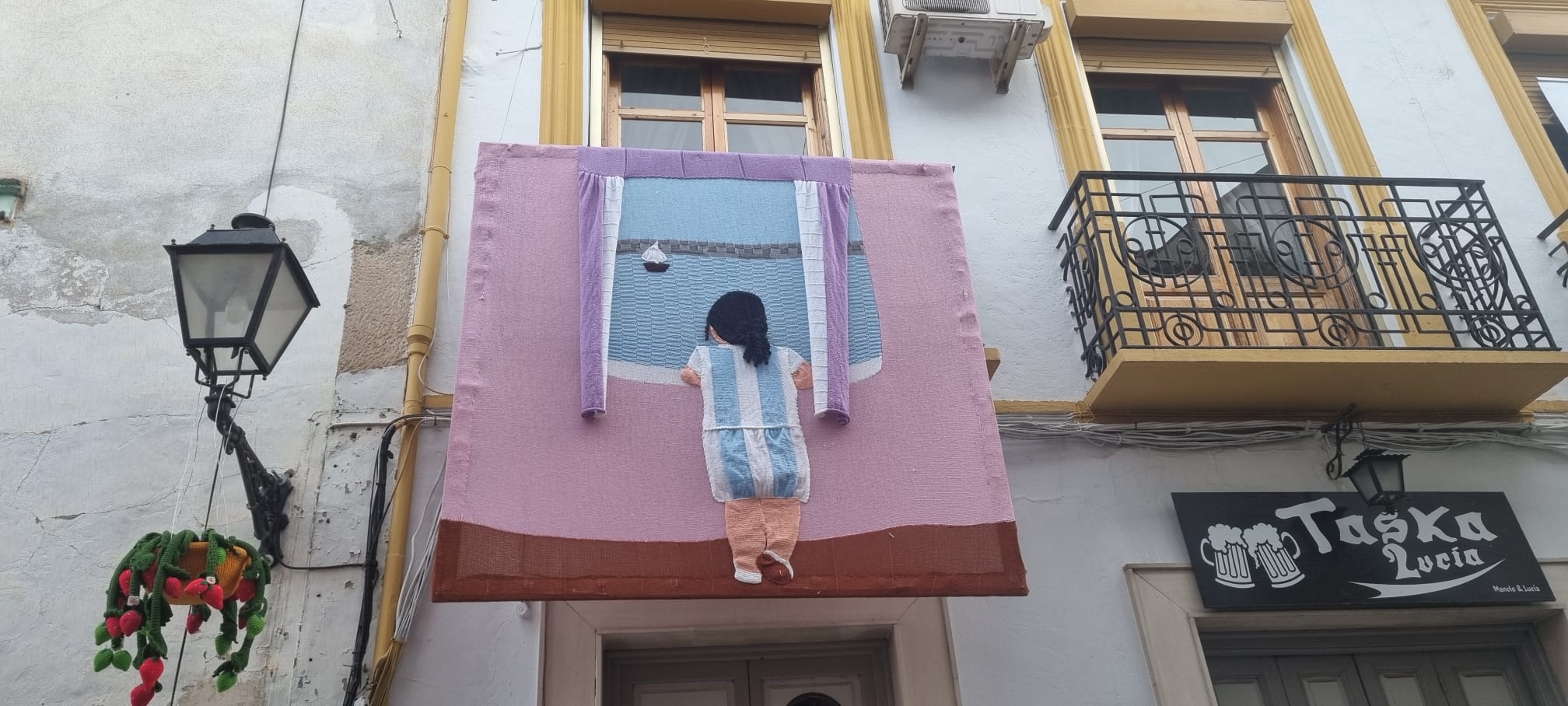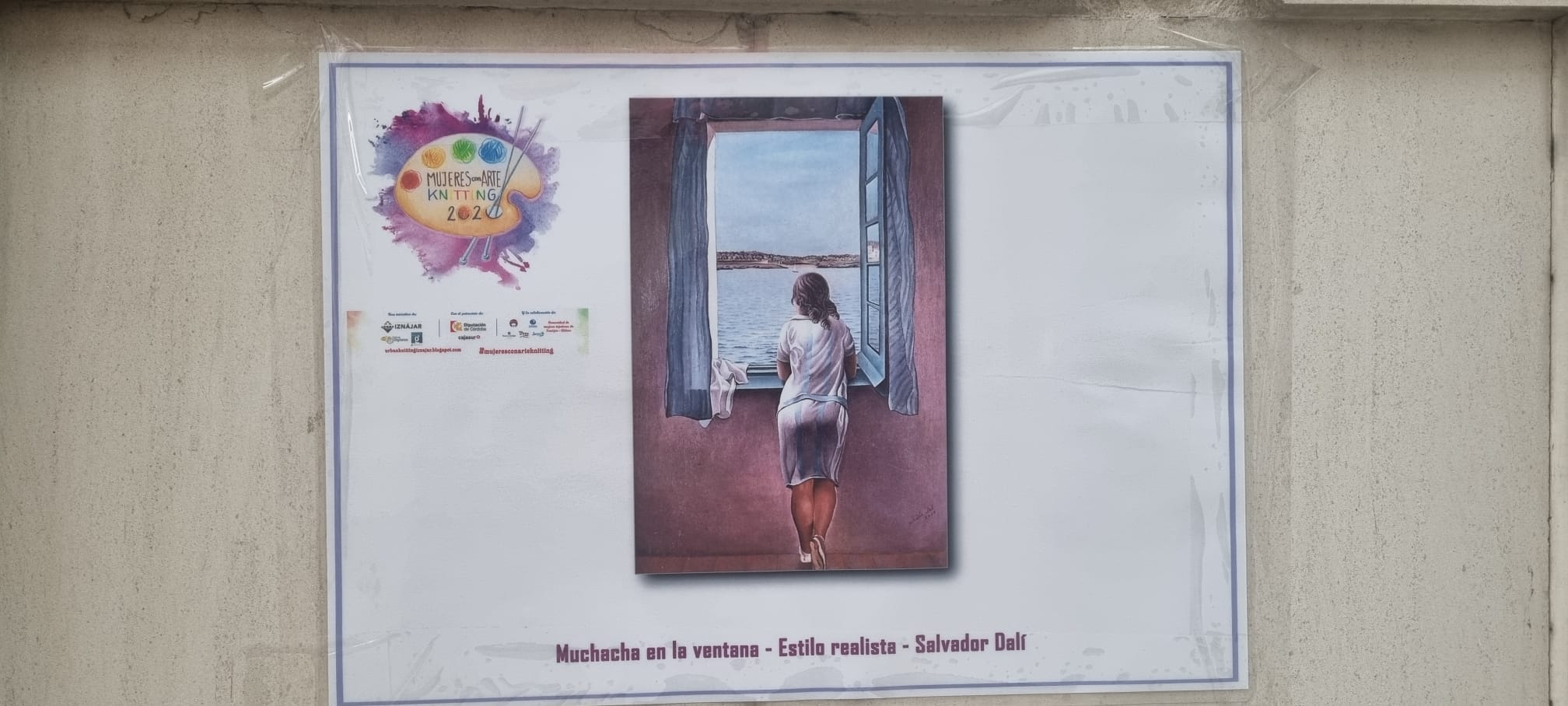 De dames van Iznajar hadden namelijk hun creativiteit gebruikt in de winter en hadden een aantal schilderijen van beroemde schilders na gebreid, Picasso en Salvador Dali ontbraken natuurlijk niet, alles was juist deze week tentoongesteld in het centrum.