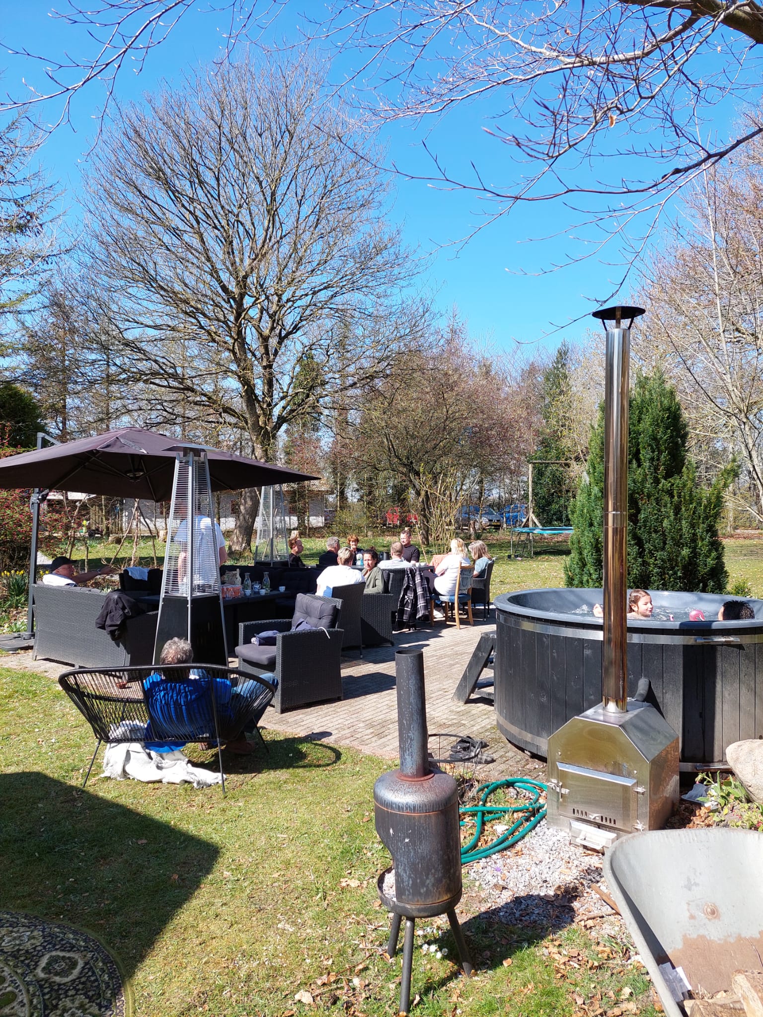 Het was heerlijk weer, 13 graden en volop zon, geen wind, echt een super lente dag. Jai ging zelfs nog in de hottub.