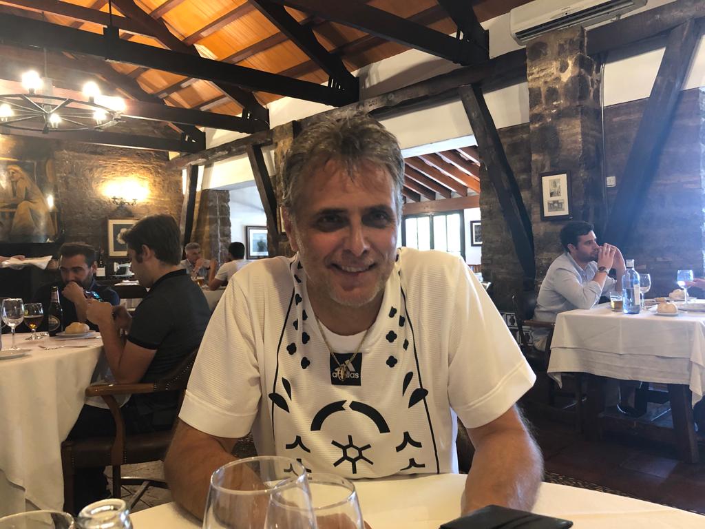 Slingers op de hacienda en natuurlijk een lekker ontbijtje op ons mooie terras, maar ik had nog meer voor hem in petto. Naast een sportief shirt van Adidas, (sorry Joyce) heb ik nog en wijnproeverij en rondleiding geregeld voor vandaag in het wijngebied Montilla hier een uurtje vandaan.