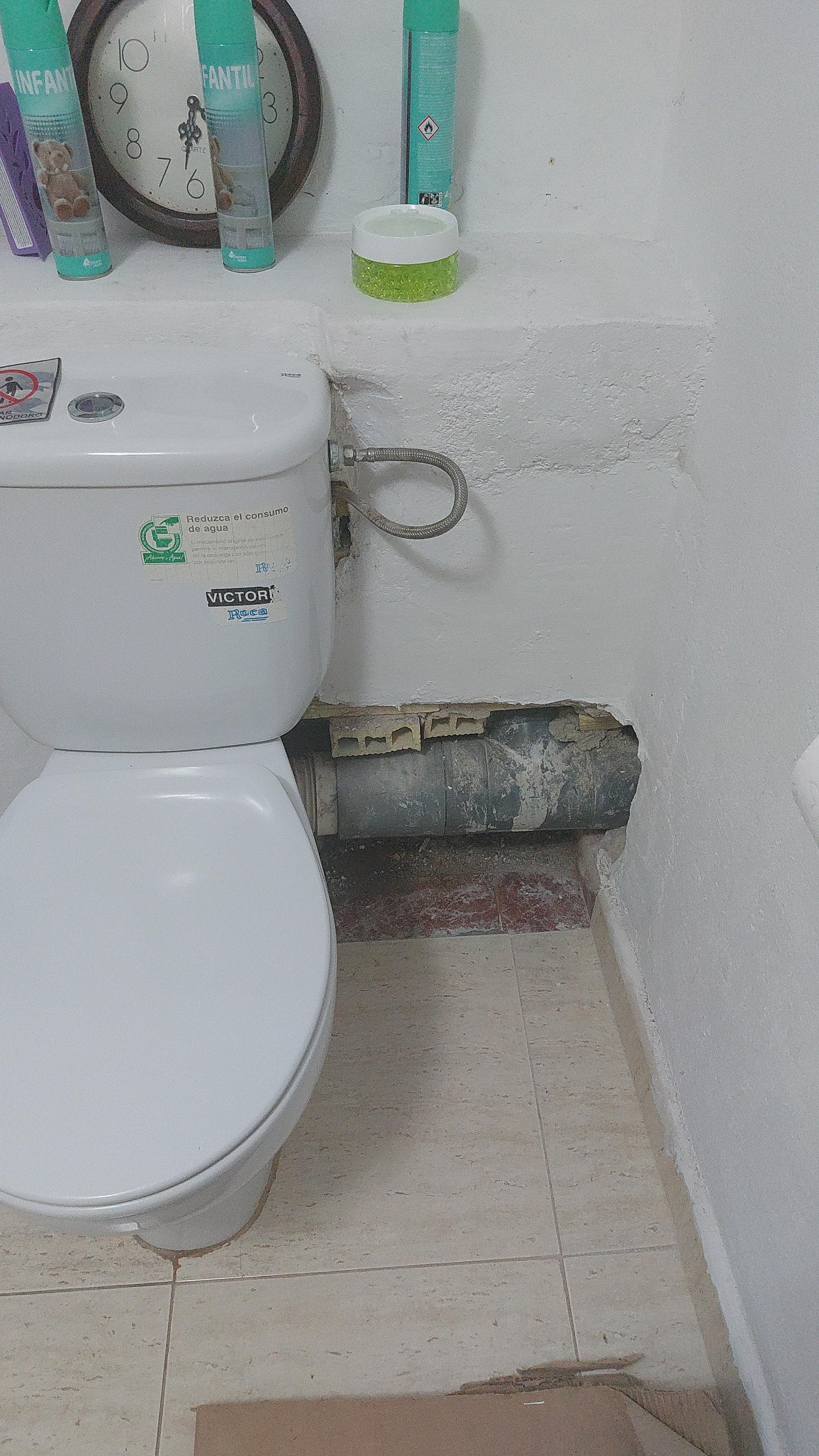 We gokten op het toilet en ja hoor een piep klein gaatje in de buis was het probleem, een nieuwe buis erin gezet en het probleem is opgelost zou je zeggen, maar omdat alles natuurlijk is weggebroken moet het weer opnieuw opgebouwd worden en de werkmannen hebben het druk dus dat duurt nog wel effe voordat dat ook weer netjes is en wij zelf hebben er ook geen tijd meer voor.