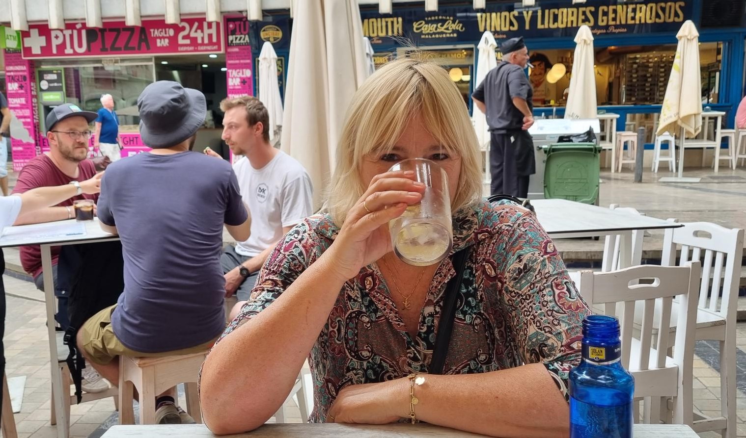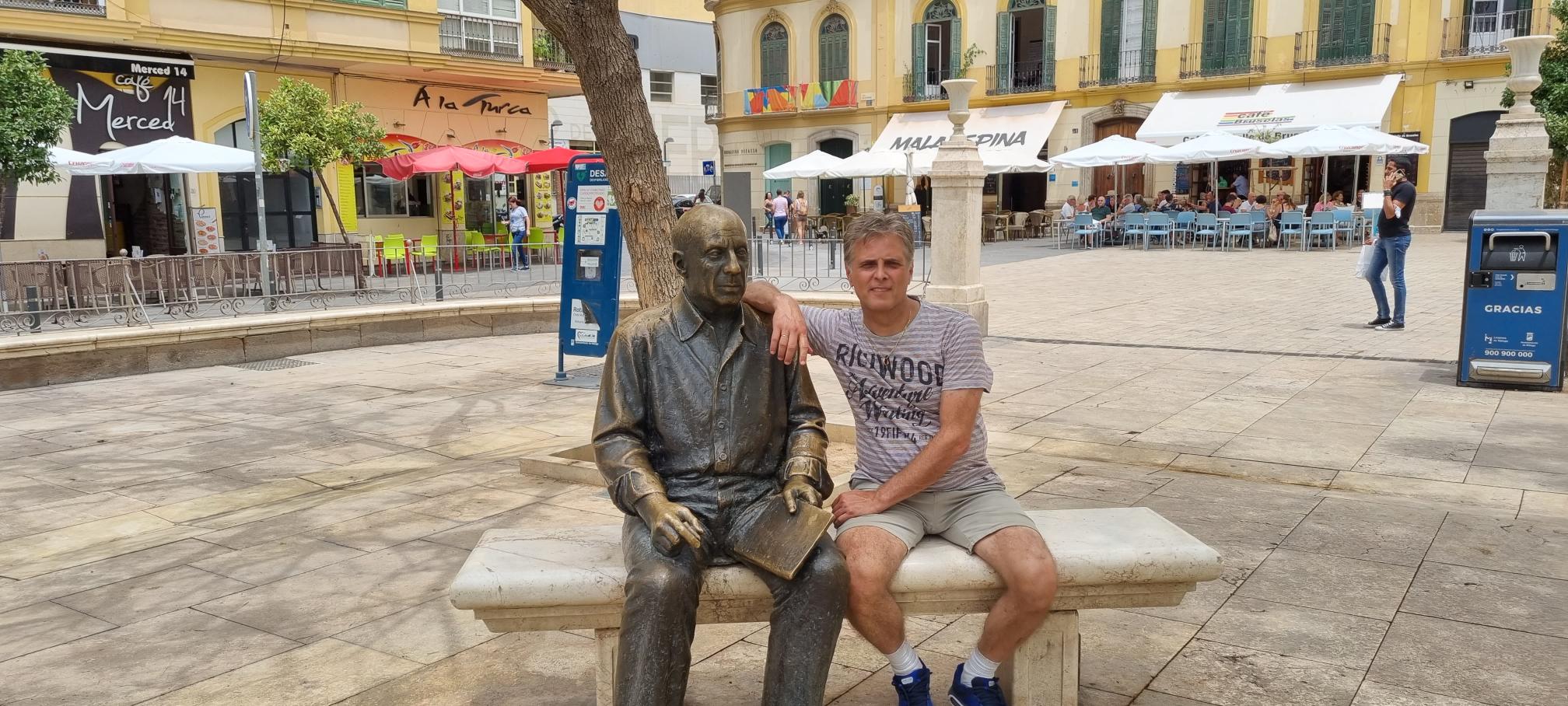 Het was wel leuk te zien dat onze straat artiest Keeltje zoals we hem genoemd hebben nog steeds actief staat te zingen aan de tafeltjes, trekkend aan zijn keel om meer vibratie te krijgen, na de serenade gaat hij met de pet rond, hij hoort bij het straatbeeld van Malaga voor ons.