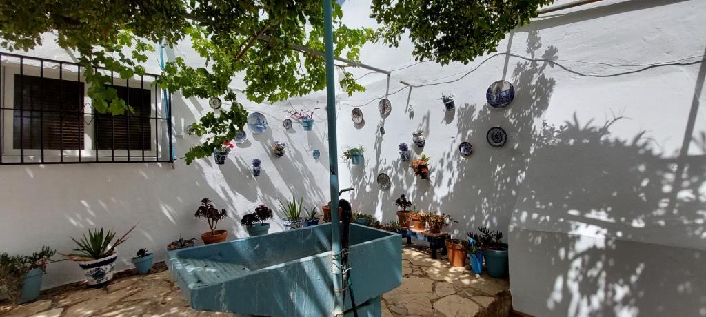 De kleuren van de streek zijn bij ons toch wel terra, wit en blauw vind ik. De grond en stenen zijn terra, de huizen wit en de potjes en borden blauw. I love it. Ik wil dat blauw nog meer gaan doorvoeren bij ons. Ik heb al vele leuke verschillende potjes op de zwembad muur hangen, verder vind je vele losse potjes her en der staan en ik heb zelfs een speciaal hoekje gecreëerd waar de blauwe kleur ook de boventoon voert.