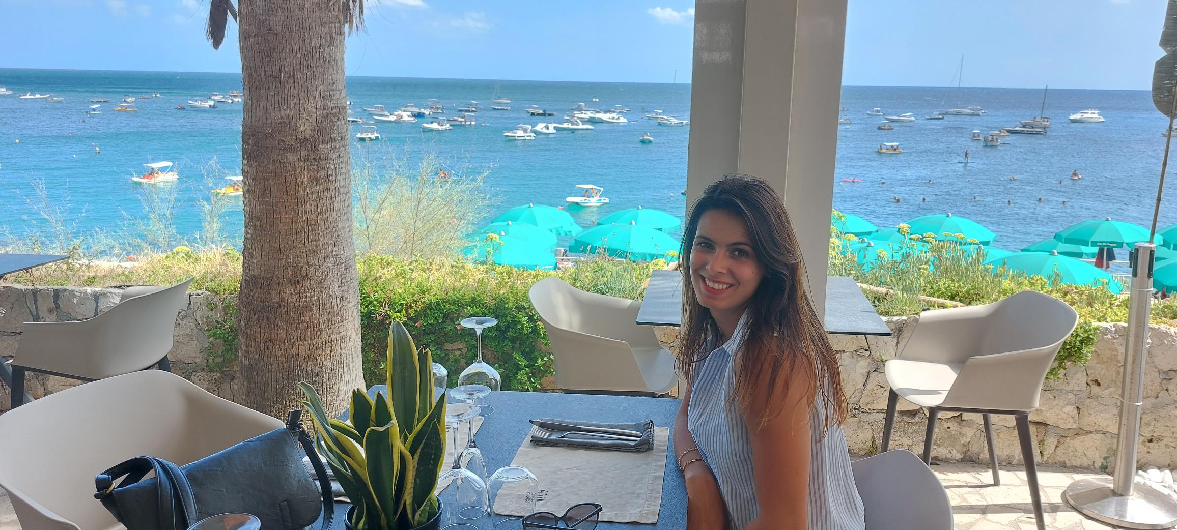 Je kan in Castro ervaren hoe het smaakt om een visje te eten dat net gevangen is. Nou en dat deden de Italianen volop dit weekend want wat was het druk zeg, geen parkeerplaats te vinden, overval auto’s langs de weg en na een paar rondjes gereden te hebben hadden we de auto maar 2,5 kilometer verder tussen de bosjes geparkeerd, aan het begin van dit dorpje. Het was nog steeds bloedheet en het viel niet mee die heuvelachtige weggetjes naar het strand te lopen. Maar toen we aankwamen bij een restaurant met de naam View waren we aangenaam verrast.