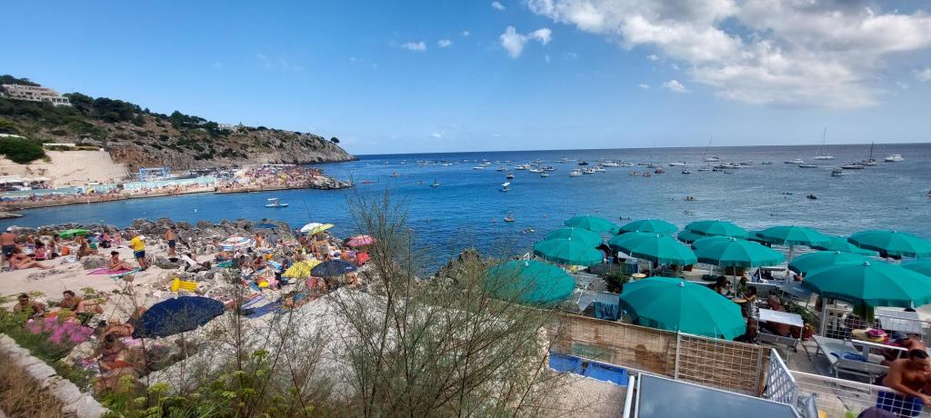 We hebben gehoord dat de Italianen hun strandkeuze laten afhangen van de wind, komt deze uit het westen dan kiezen ze de Adriatische kust en komt hij uit het oosten of noorden dan kiezen ze voor de ionische kust. Dat kan dus ook de reden van de drukte zijn, de wind stond goed voor deze kant.