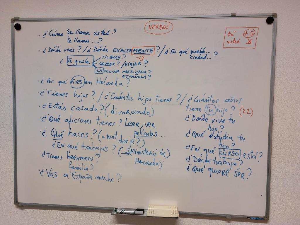 Het was behoorlijk intensief en soms denk je, ja ik snap het maar als je het dan in de praktijk moet toepassen sta je met je mond vol tanden, hoe was het ook alweer, welke vragen moet ik ook alweer stellen, gebruik ik nu estoy of soy, is het nu la of el en hoe gaan de vervoegingen ook alweer.