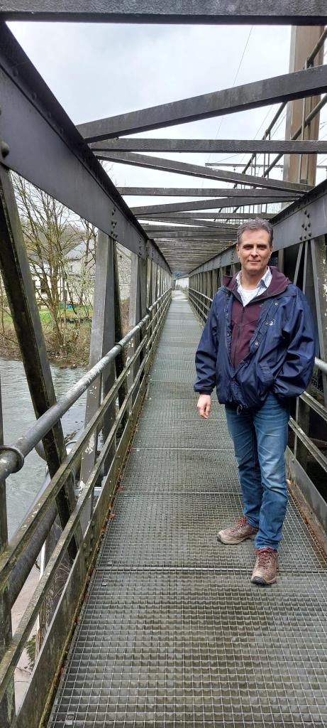 Een geliefde wandeling van ons is de Sy-Bomal_sy route van 12 km en deze kun je in verschillende moeilijkheidsgraden doen, nu dus vanwege de regen de makkelijkste. We liepen eerst over de loopbrug naar de andere kant van de rivier en dan begint de pittige klim en daarna loop je door het bos.