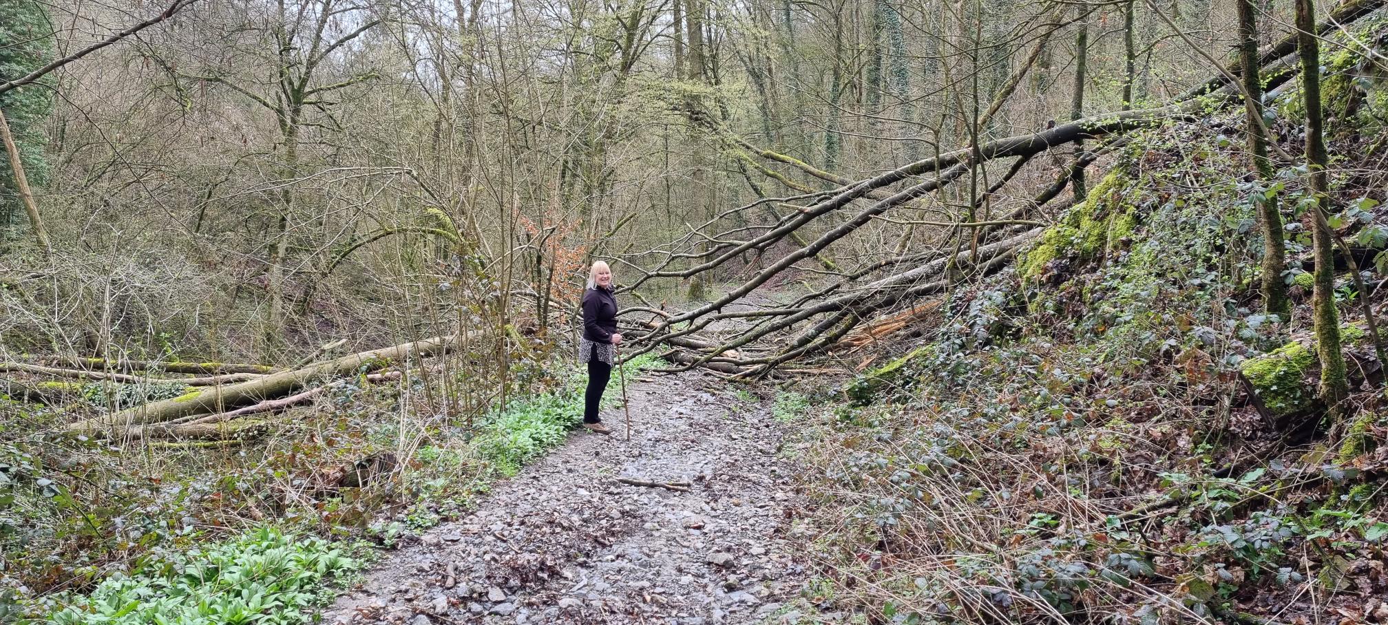 Nadat we Bomal verlaten hadden ga je weer door het bos en slingert via een smal bos pad langs de rotswand helemaal tot de top.
