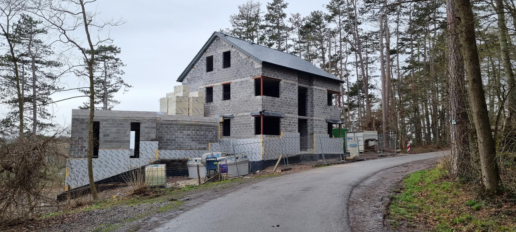 Op het hoogste punt heb je een leuk prieeltje waar je een prachtig uitzicht hebt over de omgeving. Tot onze verbazing zijn ze pal er naast een kast van een huis aan het bouwen.