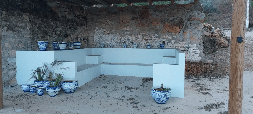Naast ons huis hebben we een grote studio en dat is perfect voor de winter opslag van onze buiten spullen. Nu moesten we alle spullen weer op zijn plek gaan zetten, best een klus hoor, alle bankjes, gewone stoelen, ligbedden, parasols en het schaduwdoek.