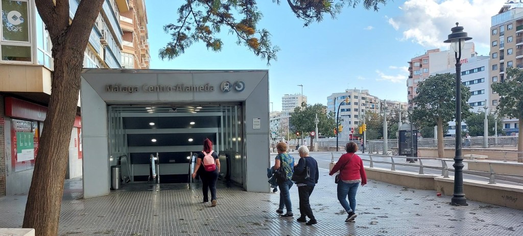 Daarna besloten we om de auto te laten staan op de grote parkeerplaats en eens een keer de trein te gaan pakken naar Malaga stad. Dat hebben we in al die jaren nog nooit gedaan, weer een nieuwe ervaring. Pal achter Plaza Major zit een station en daar kun je bij een automaat van Renfe een retourtje kopen voor € 4.8 pp. Of het nu een trein is of metro weet ik niet precies want hij gaat deels boven de grond en deels onder de grond.