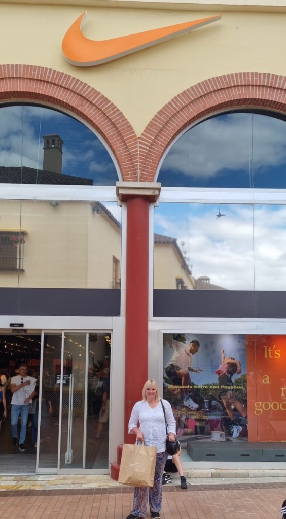 Mijn vriendin die bij Nike werkt had ons een kortingsbon gegeven voor de outletstore en we zagen staan dat we deze ook in Malaga kunnen gebruiken, nou dat komt mooi uit. Het was beredruk in het winkelcentrum, het leek wel het hoogseizoen al en in de Nike store was het helemaal overvol, er waren heel veel dingen afgeprijsd en wij kregen daar ook nog eens een dikke korting over. Ik was goed geslaagd met mooie rosé nike’s voor mezelf en voor Fallon ook de allerschattigste witte in maatje 22 en die koste me nu slechts €10 wat een koopje.