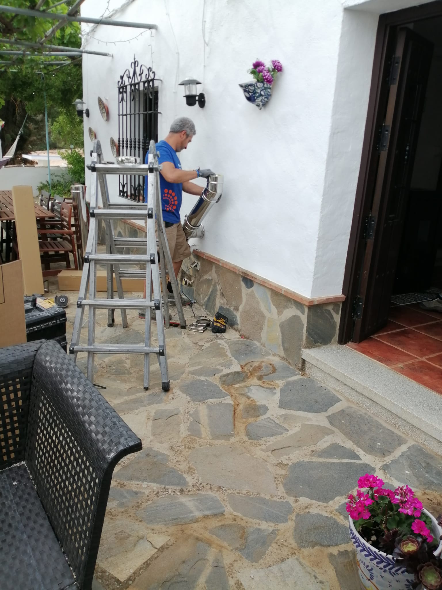Een eeuwigheid, ja echt hoor maanden hebben we moeten wachten op het plaatsen van een nieuwe pelletkachel in ons Spaanse huis. Eindelijk gaat het het dan gebeuren. Ineens prompt, morgen komen we, appte ze. Alles moest omgegooid worden door mijn ouders die nu in ons Spaanse huis zitten, ze hadden eigenlijk andere plannen, maar ik was bang als ik zou zeggen het kan morgen niet dat we dan weer een tijd moeten wachten. Dus kom maar op. Pap let je hier en daar op zei ik en Mama maak je foto’s zei ik, zodat ik het van een afstandje toch nog even kan volgen.