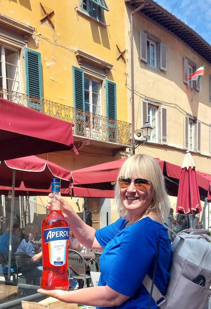 Het was voor ons nog te vroeg voor een aperol spritz maar geloof het of niet er zaten massa’s mensen al lekker te lurken aan dit Italiaanse populaire drankje. Maar mooi niet dat het in het land zelf goedkoper is hoor want de prijzen zijn, 7, 8 of zelfs 9 euro per glas.