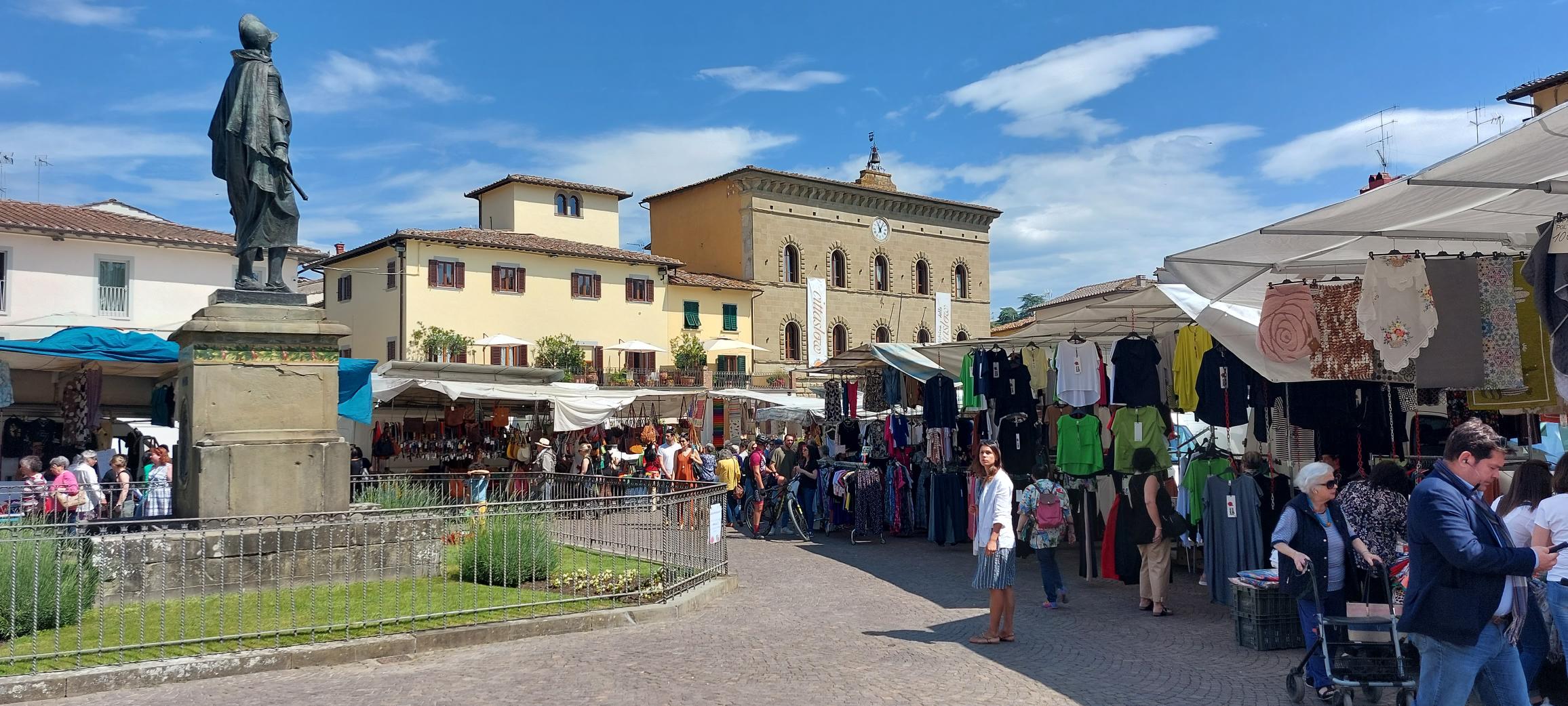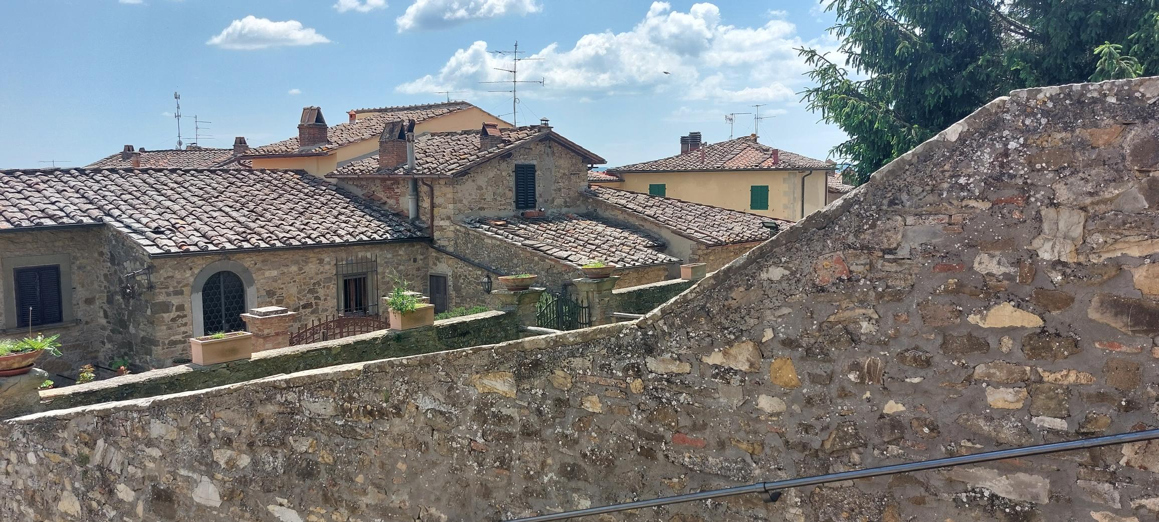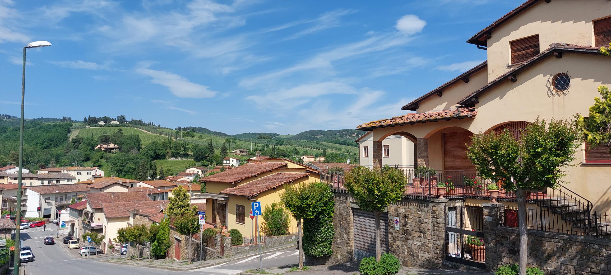 Daarna belanden we op het grote plein in het midden van het dorpje, er bleek een marktje te zijn. Bij een bakkertje bestelden we een zoet broodje en een thee en koffie. Het dorpje zelf is niet zo bijzonder maar het landschap eromheen is wel prachtig daarom reden we snel weer door naar het volgende dorpje Panzano.