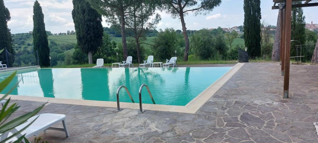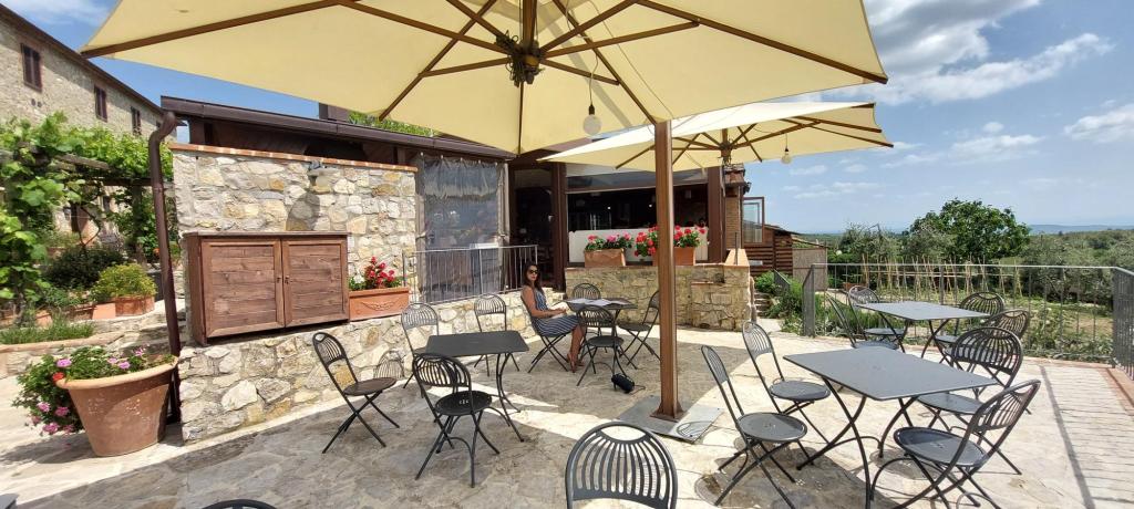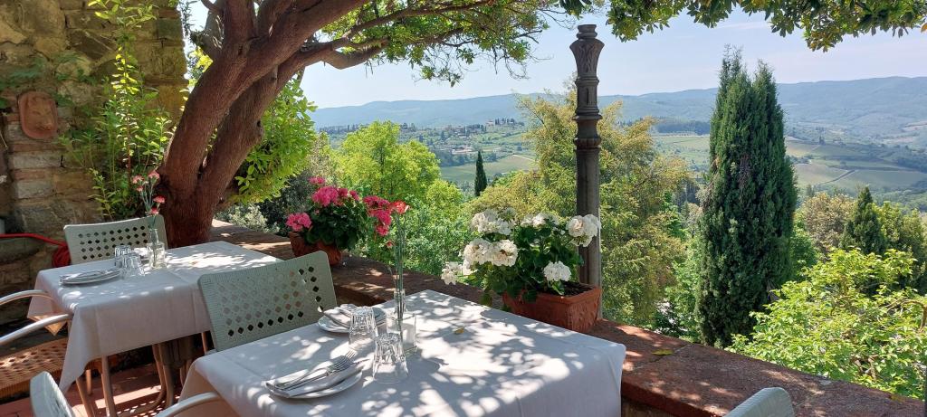 Ze hebben een binnen restaurant met een glazen pui zodat je een prachtig uitzicht hebt op de Chianti en Siena en ze hebben ook een leuk buitenplekje om een wijntje te drinken.