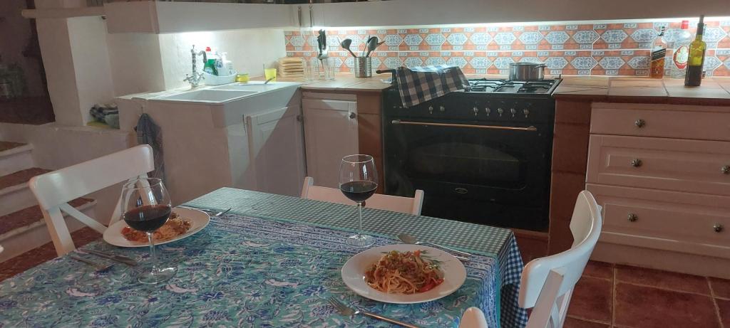 In onze gezellig keuken had Les een lekkere pasta in elkaar gedraaid en het wijntje stond ook al klaar, wat een verwennerij.