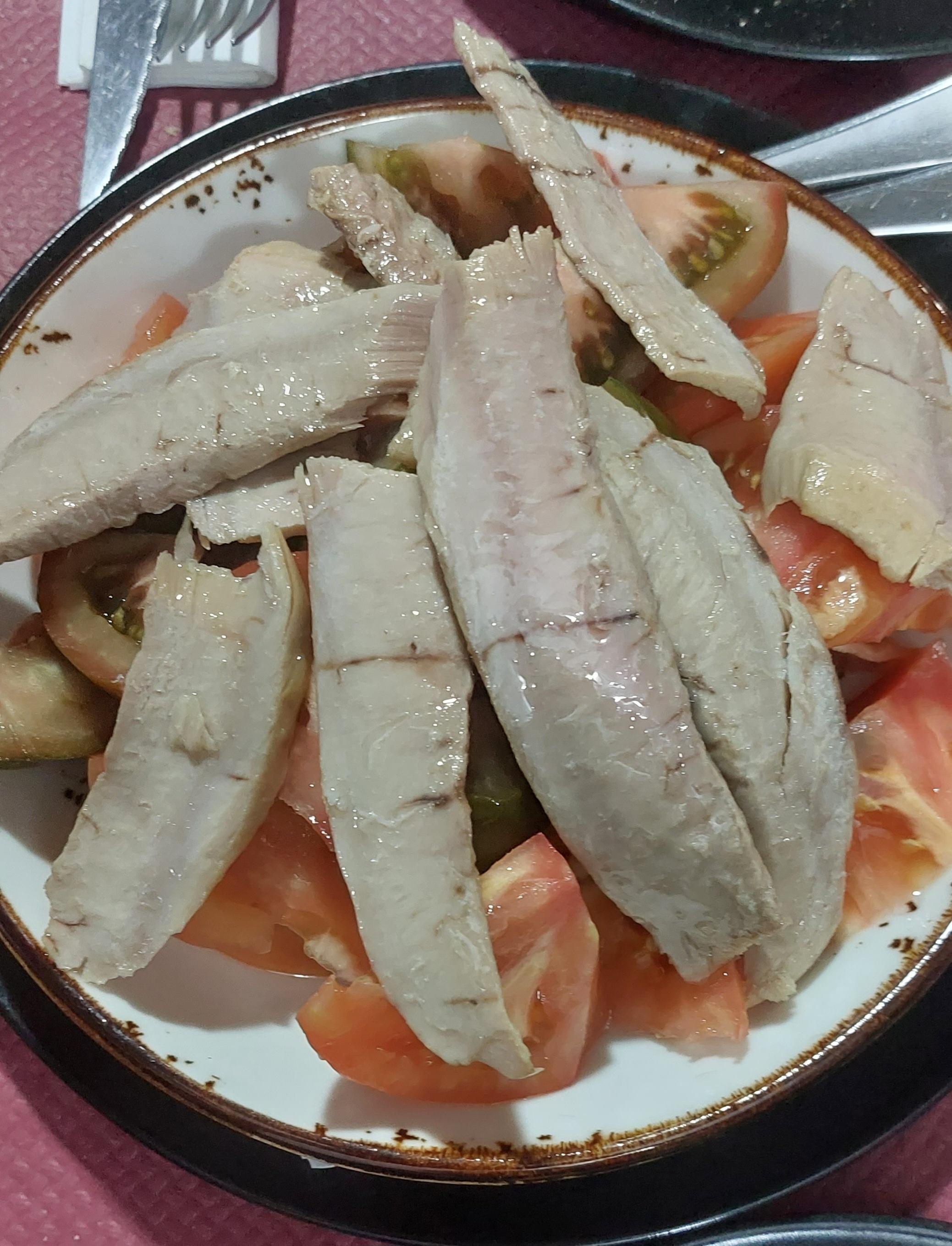 Eind van de middag hadden we nog even gezwommen om zo wat af te koelen, het was echt heel erg warm vandaag, zeker 38 graden. Om 21 uur reden we nog even gezellig naar Manolo, het is te warm om zelf te koken en tevens is het onze laatste avond met z’n tweetjes want morgen komt Les zijn zus voor bijna 2 weken. We aten een heerlijke frisse tomaten salade met tonijn en namen er ook nog een stukje gegrilde kip bij, het smaakte weer zoals altijd perfect.