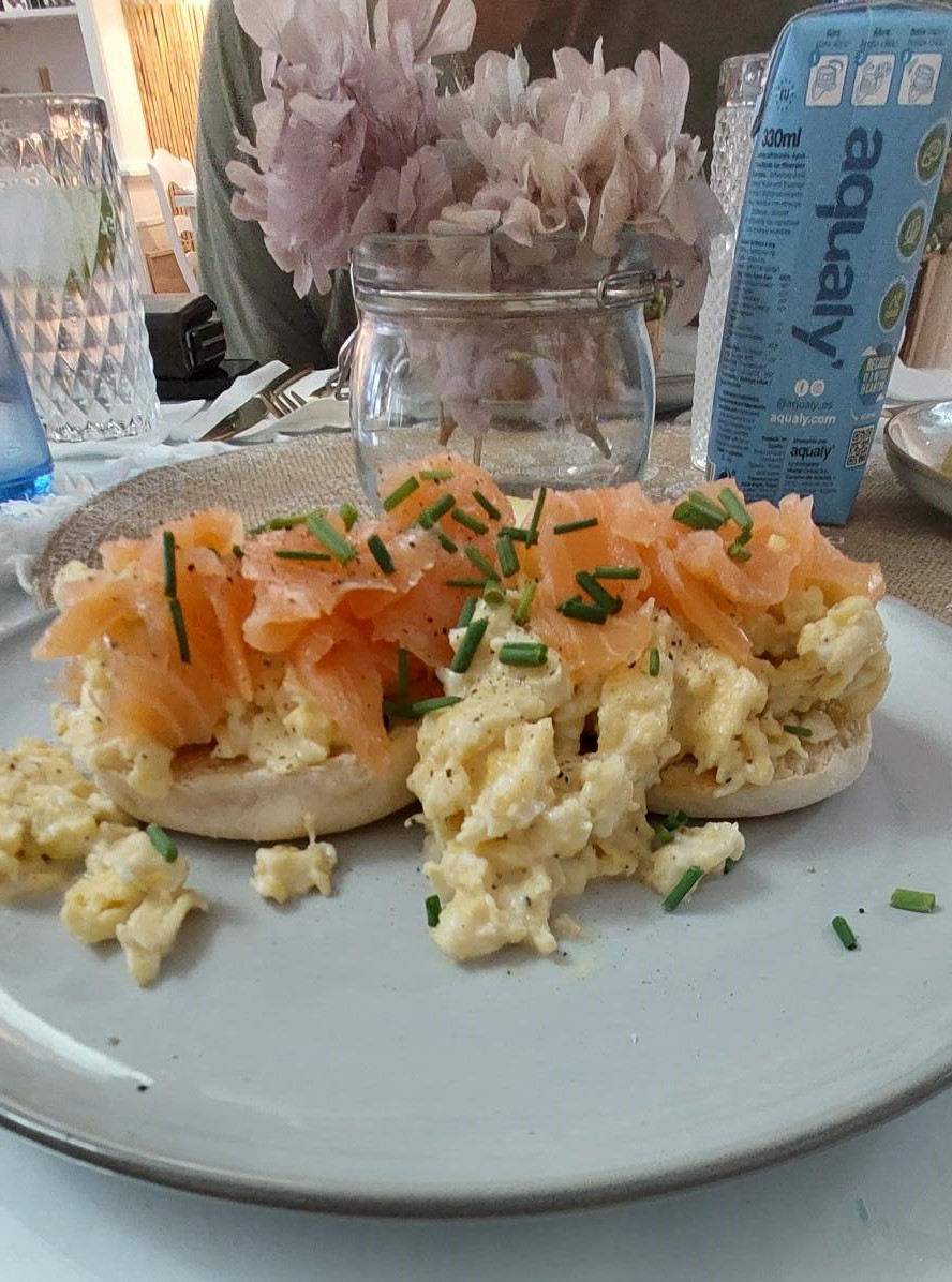 Ik nam de scrambled eggs met zalm en Les de toast met avocado en bacon. Ik vind dat normaal gesproken typische ontbijt gerechtjes maar dat ging er nu voor de lunch prima in omdat we tegenwoordig toch niet eten s’ morgens vroeg.
