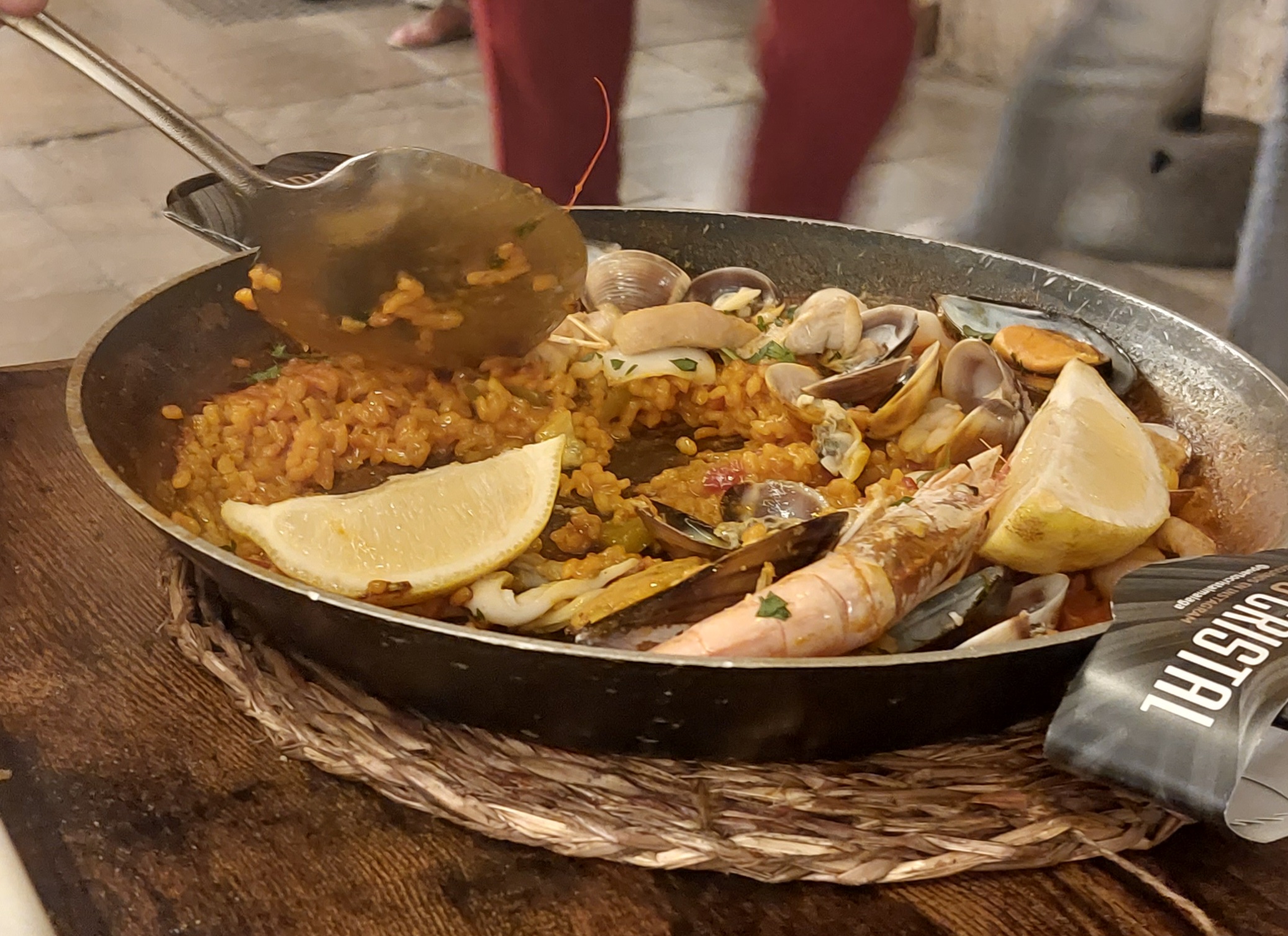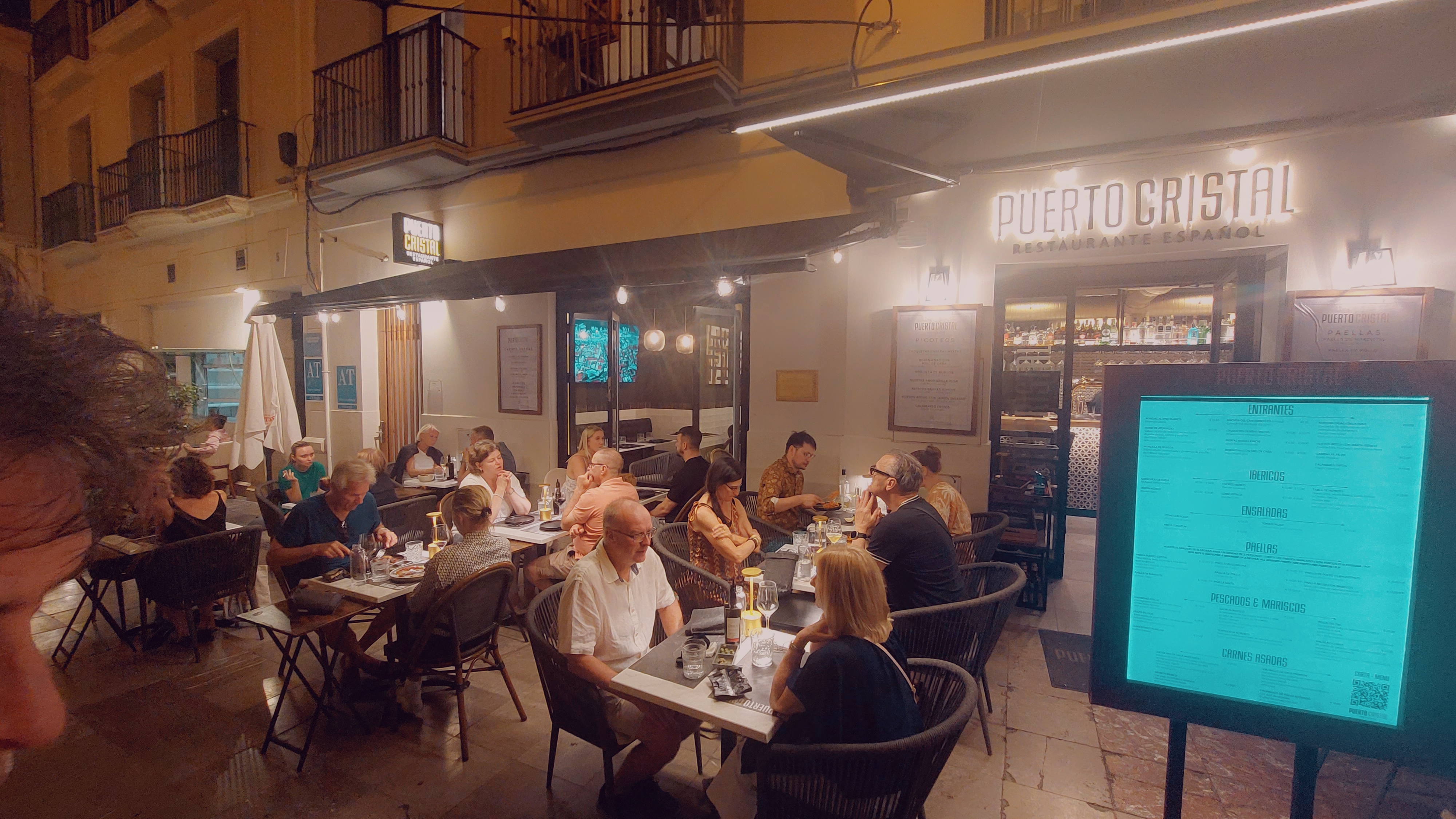 Buiten was alles vol, binnen kon nog wel maar omdat het weer nog zo lekker is besloten we dat we dat niet wilden en liepen een deurtje verder bij de buren. Puerto Cristal zag er ook gezellig uit en vele zaten daar aan de paella.