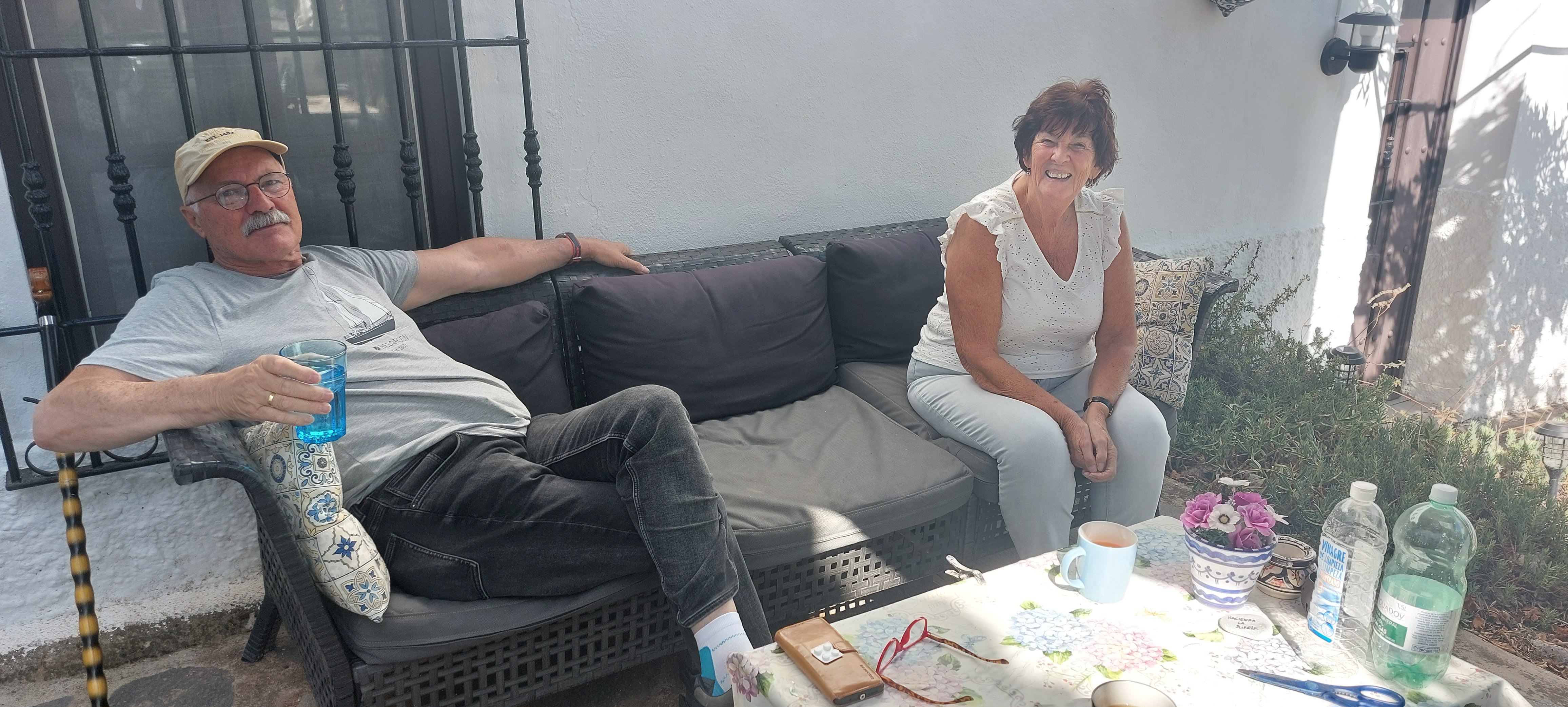 Net voordat we wilden vertrekken kreeg Lesley een appje van een vriend vertelde hij, die vriend stond met autopech in Granada en of Les hem op wilde halen.