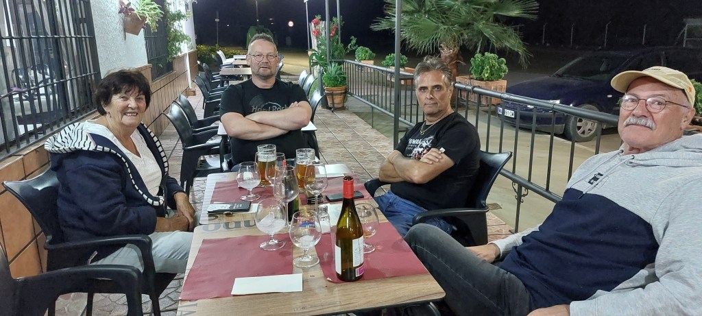 Lesley en Ramon bestelden ook nog een hamburger en zo zaten we gezellig om 11 uur op het terras vollop te kletsen, die Spanjaarden zullen wel gedacht hebben wat gebeurt daar allemaal maar aan onze blije gezichten te zien konden ze vast aflezen dat het iets heel leuks was.