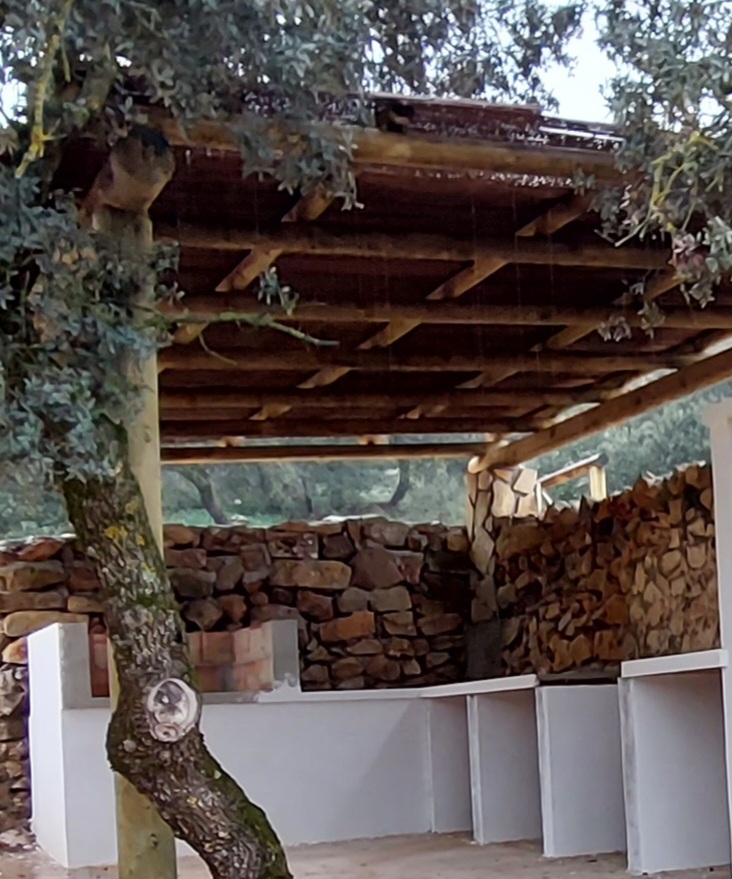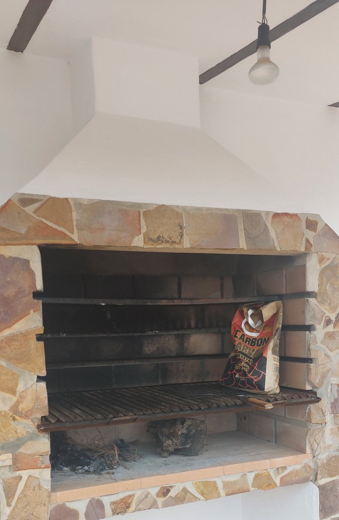 De bbq moet nog afgemaakt worden, we hadden het erover dat we geen open bbq kunnen hebben onder de overkapping dus daar moet een oplossing voor bedacht worden, je wilt natuurlijk geen brand. Hij vertelde dat hij al eens een mooie bbq gemaakt had bij een Engelsman en vroeg of ik mee ging kijken bij het huis hier een paar km vandaan.